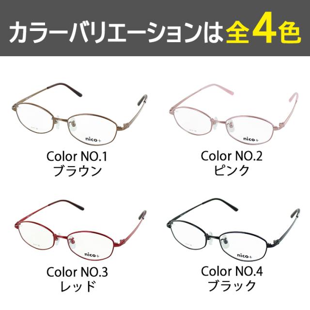 | <フレームカラー> Color.1 ブラウン Color.2 ピンク Color.3 レッド Color.4 ブラック | <素材> フレーム材質:メタル合金 テンプル材質:メタル合金 |