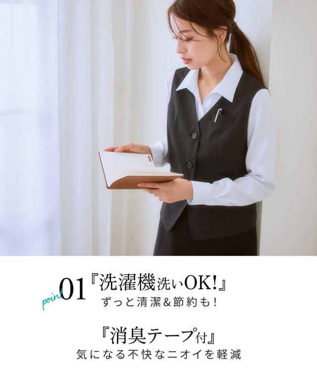 【事務服・会社制服】洗えるベスト(消臭テープ付)(上下別売り)