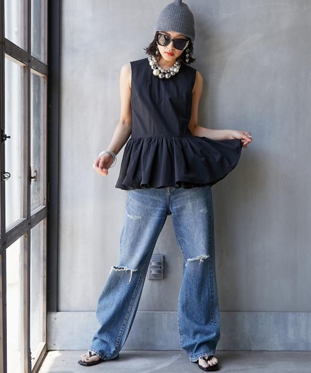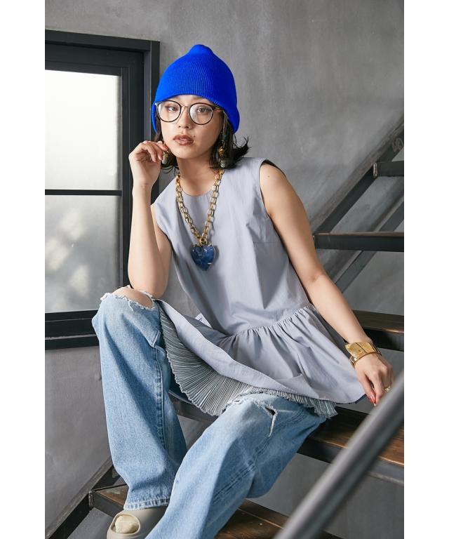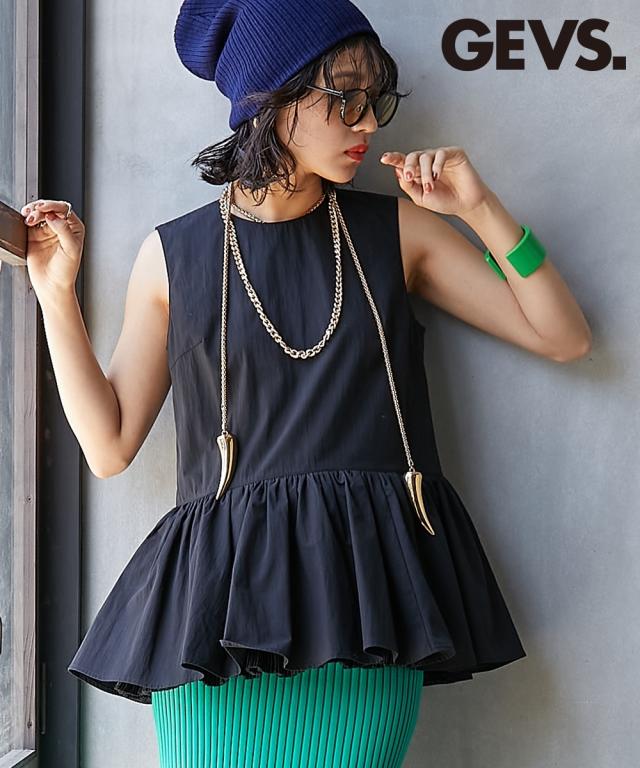 大きいサイズ ペプラムフリルノースリーブブラウス GEVS.