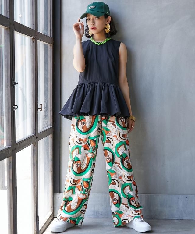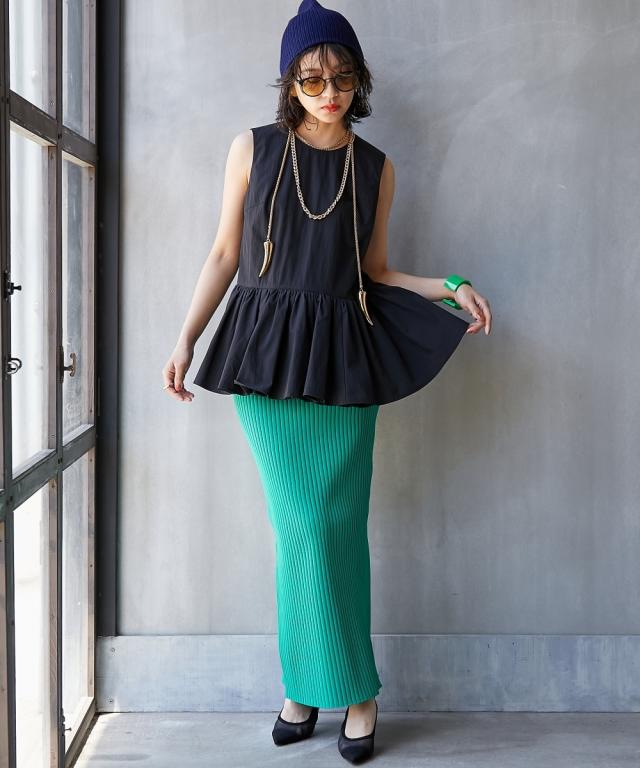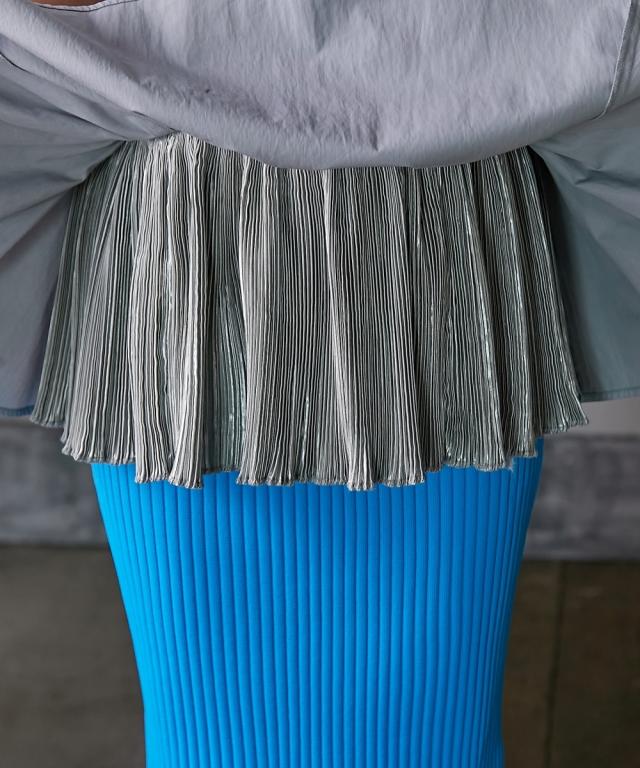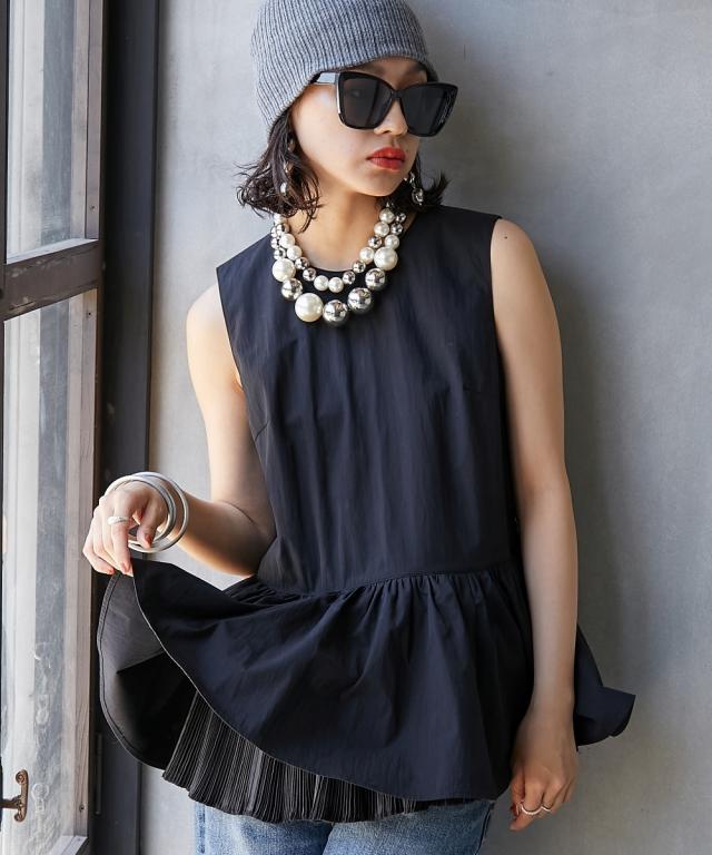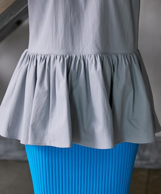 秀逸なシルエットが自慢のペプラムブラウス。 ■デザイン ウエストの切り替えから裾に向かってふんわり広がる美しいシルエットです。 張り感のある生地に更にペプラム部分にプリーツ生地を重ねた2枚仕立てにすることで、構築的なラインにし、少しモードな気分のデザインに仕上げました。 ■素材 張り感のある綿ナイロン素材を使用。 ■おすすめのスタイリング デニムパンツやプリントパンツなどのカジュアルボトムはもちろん、タイトスカートと合わせた女性らしいコーディネートもおすすめです。
