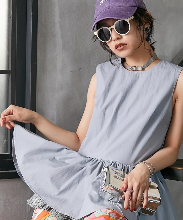 シャツ ブラウス 大きいサイズ レディース ペプラムフリル ノースリーブ GEVS. L/LL/3L/4L/5L ニッセン nissen