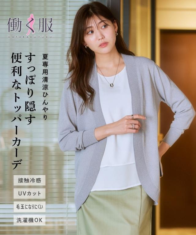 ◆体型カバーにこだわった毎年人気の多機能サマーニットシリーズ◆<おすすめポイント>夏に嬉しい4つの機能「接触冷感」「UVカット」「毛玉になりにくい」「洗濯機OK」を備えた夏にぴったりのサマーニット。毎年人気の一番の理由は、ドライタッチで着た瞬間からひんやり涼しい接触冷感。