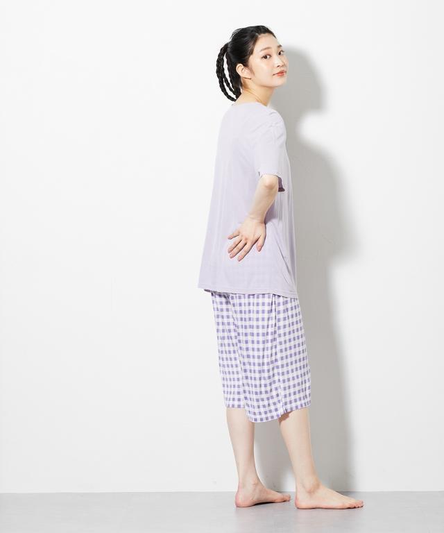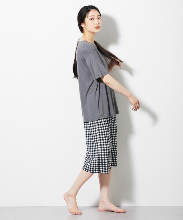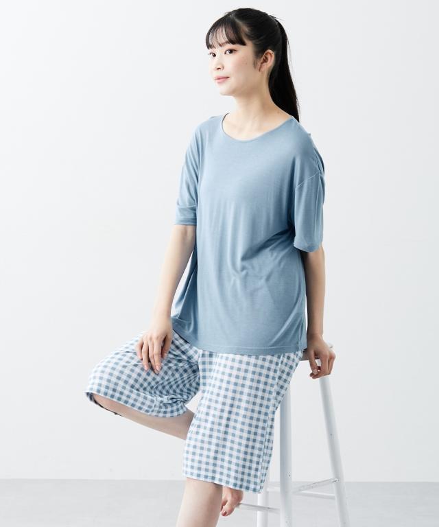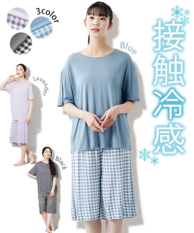 暑い夏にうれしい、触れた瞬間ほんのり冷たい接触冷感のルームウェア 暑い夏に活躍間違いなしのルームウェア。 触れた瞬間ほんのり冷たい接触冷感で涼しく、軽やかな半袖とハーフ丈のセットが夏にぴったり 。 無地のトップスとギンガムチェックのボトムでシンプルながらかわいい。 〜おすすめポイント ■接触冷感素材 触れた瞬間ほんのり冷たい接触冷感素材で暑い季節にうれしい。 なめらかでとろみのある肌触りが気持ちいい。 ほどよい伸縮性もあるので動きの妨げにもならず、心地よい履き心地です。 ■上下セット ベーシックなクルーネックの半袖トップスとハーフ丈ボトムのセット。 かぶりでサッと着用できるタイプです。 ■ゆったりサイズ 窮屈感のないゆったりとしたサイズ感。 締め付け感もなくリラックスできます。 ■ウエストゴム ウエストはゴムでらくらく ■ウエストゴムは取り換え可能 ボトムのウエストにゴム取り換え口付き。 お好みや必要に応じてゴムの調節や交換ができます ■M〜10Lまで対応 たくさんの人に着用して欲しいからM〜10Lまで対応の全6サイズをご用意しました。 M-L、LL-3L、4L-5L、6L、8L、10L あなたにぴったりのサイズがきっと