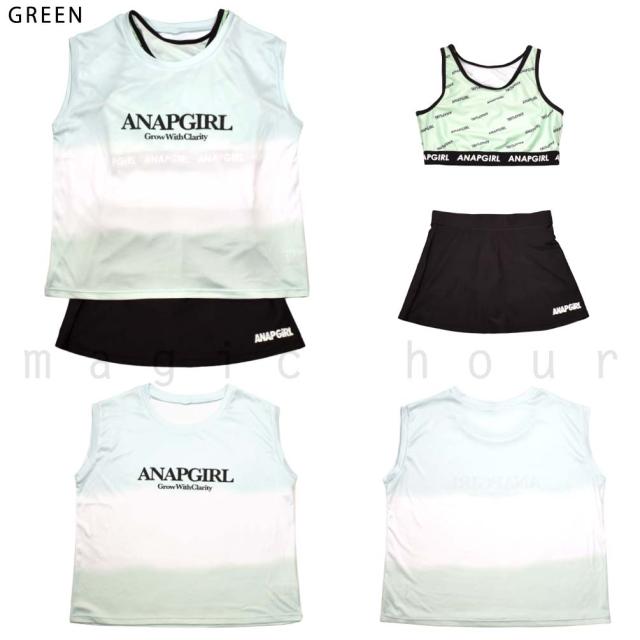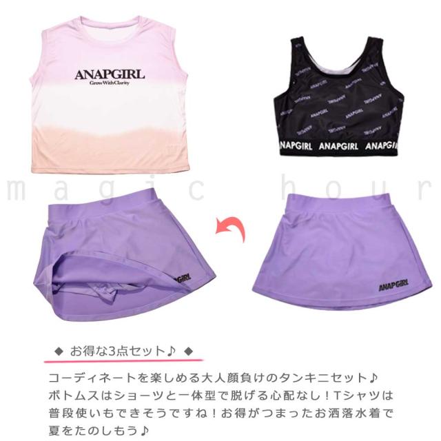 ガールズ 水着 女の子 タンキニ セパレート スイムウェア 3点 セット ANAP アナップ T付き 子供 ジュニア ブランド お洒落 140 150 160 cm 白 パープル グリーン