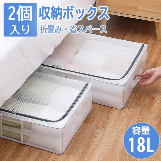 「2個セット」ベッド下収納ボックス 衣類 靴 収納ボックス 折りたたみ式 ベッド下収納 収納ケース ベッド下ストレージコンテナ PVC 強化ファスナー ハンドル付 衣装ケース 靴収納ボックス すき間収納 積み重ね 防塵 防虫 撥水
