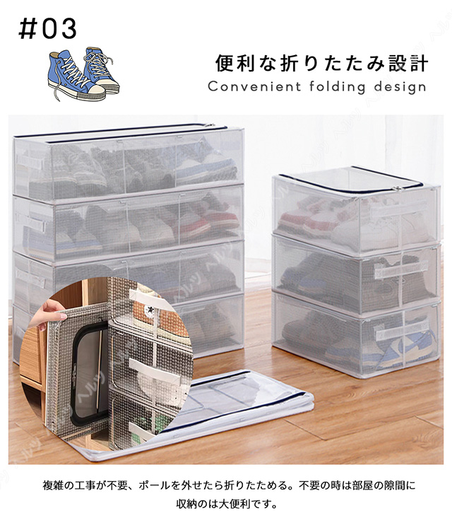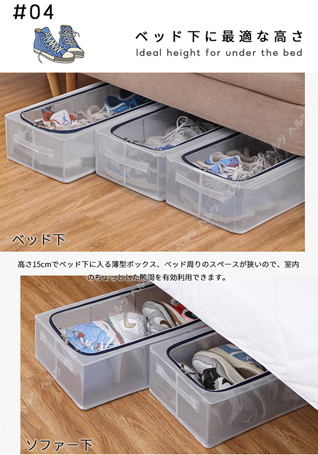 【形を維持&通気性抜群】収納ボックスは頑丈なステンレス製のサイドパネルと厚い底部を備えており、何も置かなくても形を保つことができます。ベッドの下やクローゼットなどのスペースに置いてすっきりと収納でき、お部屋のスペースも広がります。