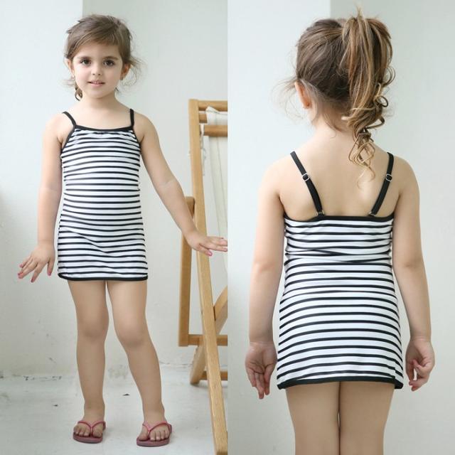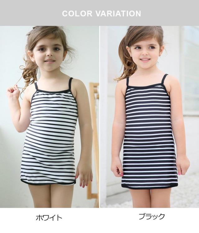 子供 水着 女の子 ワンピース キッズ ジュニア 女児 110cm 120cm 130cm 140cm 150cm 160CM 170CM 小学生 オールインワン 肩フリル おしゃれ かわいい ストライプ ボーダー 水遊びプール 海 動きやすい ホワイト ブラック k6146zbzblc