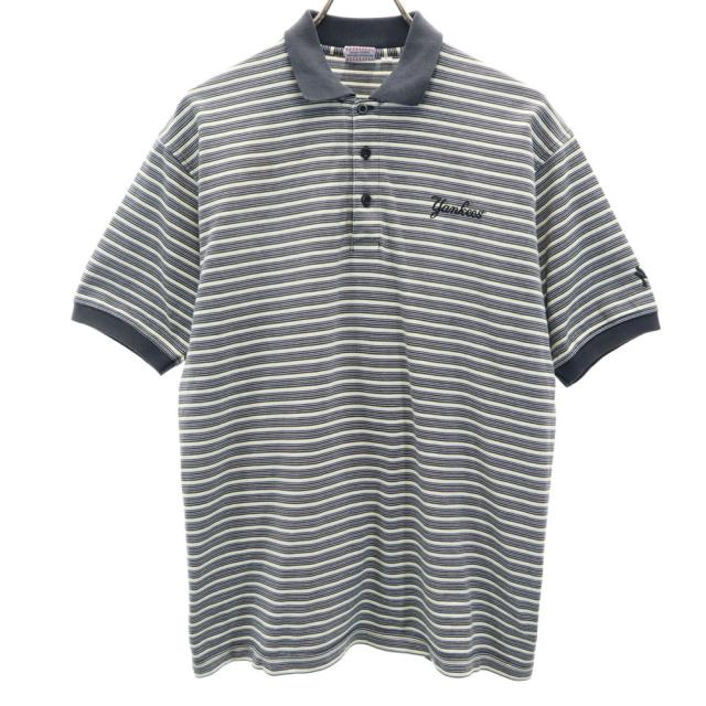 メジャーリーグベースボール ヤンキース ボーダー柄 半袖 ポロシャツ L グレー系 Major League Baseball メンズ