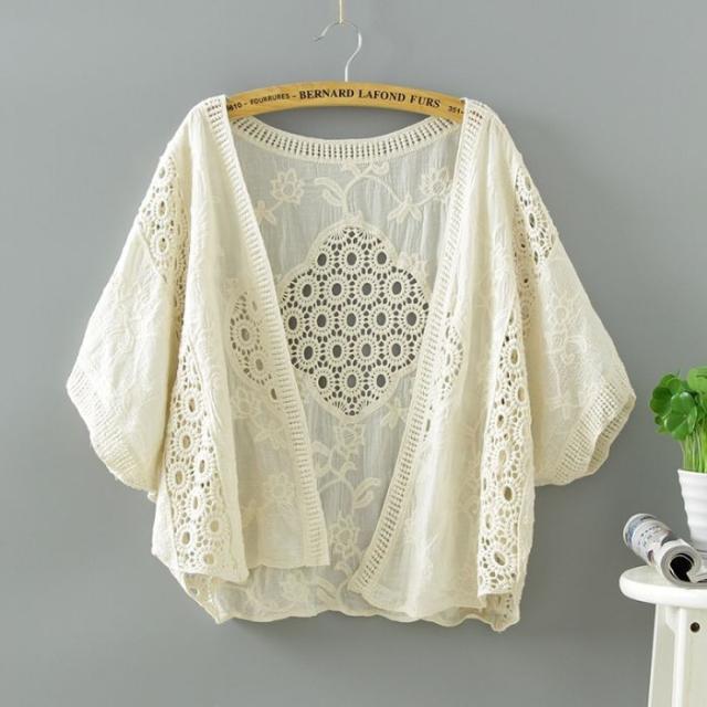 透かし編み カーディガン レディース 涼しい 夏 五分袖 サマー 羽織 綿100 森ガール ドルマン ボレロ 薄手