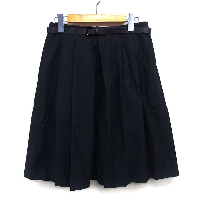 【中古】マカフィー MACPHEE トゥモローランド フレア スカート 膝丈 シンプル ベルト タック 綿混 38 ダークグレー