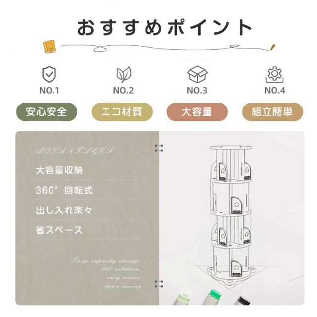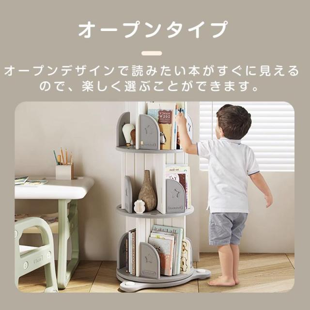 回転式本棚 3段 4段 5段 絵本棚 スリム 360° 子供 本棚 回転 コンパクト 大容量 組立簡単 省スペース 収納