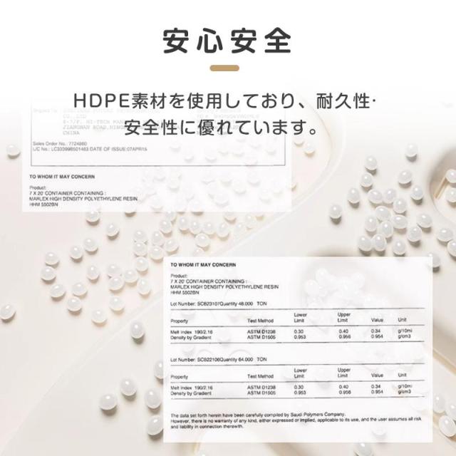 【安心安全】耐久性・安全性に優れているHDPE素材を採用します。