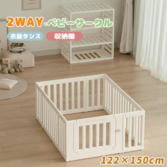 ベビーサークル ベビーゲート ベビーフェンス プレイヤード 内径122*150cm 置くだけ 外径変形可能 収納棚へ変身可能 簡単組立