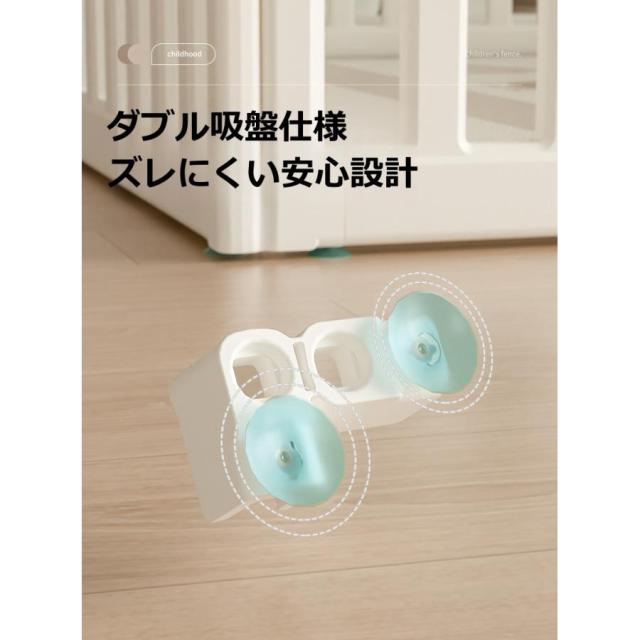 【固定ホルダー+吸盤付き 】固定式ホルダーなので、折りたためるタイプのサークルより随分安定します。さらに底面ホルダーに吸盤があって、サークルがズレたり倒れたりするのを防止できます