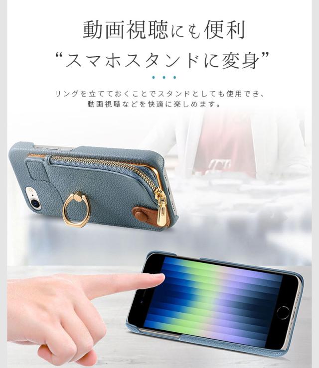 iPhonese3ケース iPhonese2ケース iPhonese 第3世代 第2世代 アイフォンseケース アイフォンseカバー 背面型ケース 財布型 アイフォンse3ケース リング付き アイフォンse2ケース スタンド機能 iPhone8カバー ファスナーポケットiPhone7ケース おしゃれ