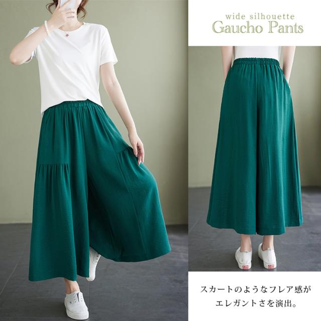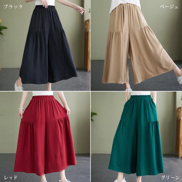 ★☆大きいサイズ レディース ガウチョパンツ ワイドパンツ ウエストゴム 無地 夏 LL 3L 4L 5L 6L ブラック ベージュ レッド グリーン☆★