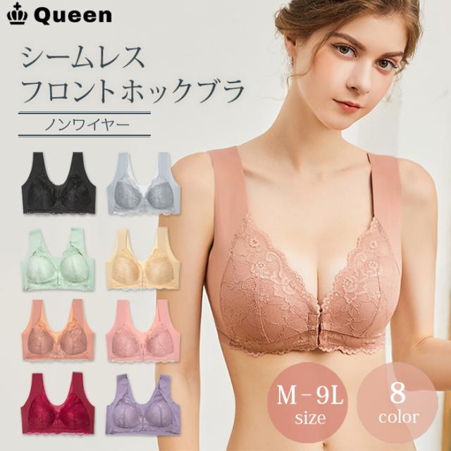 ★☆ブラジャー ノンワイヤーブラ フロントホックブラ シームレスブラ レースブラ 大きいサイズ レディース ナイトブラ 楽ブラ ストレスフリー 快適 フィット 伸縮性 通気性 蒸れにくい 軽い すっきり 着心地 M L LL 3L 4L 5L 6L 7L 8L 9L Queen クイーン☆★