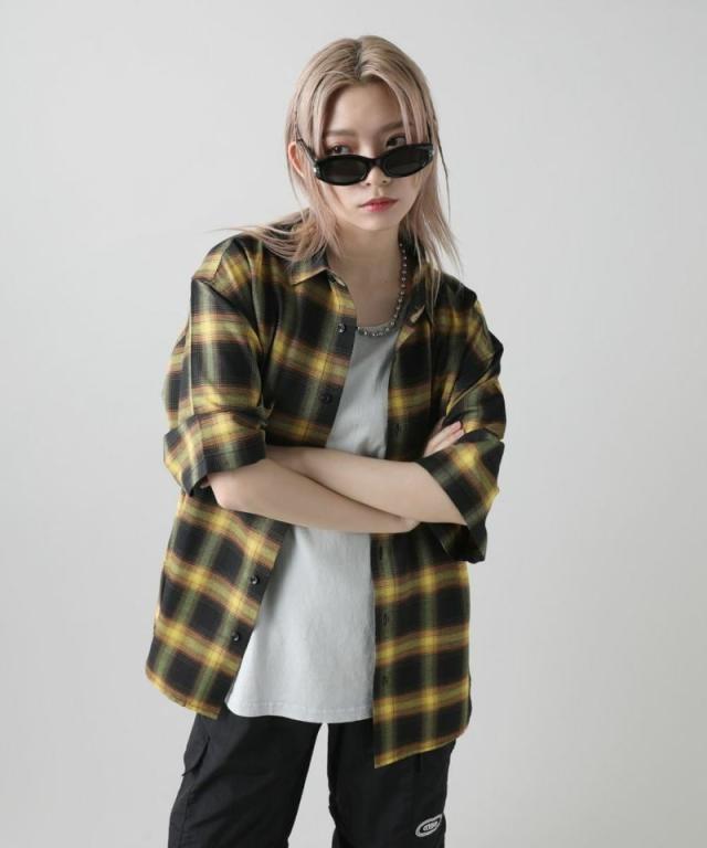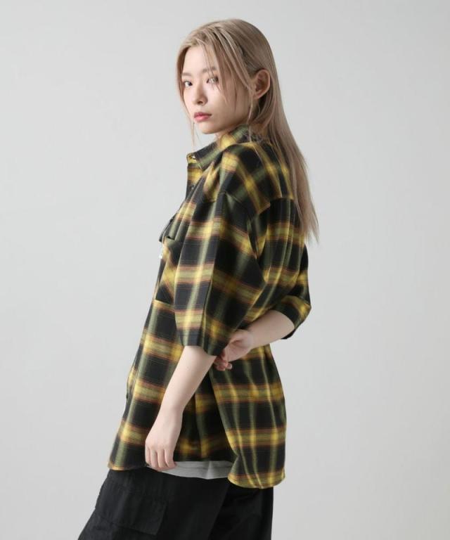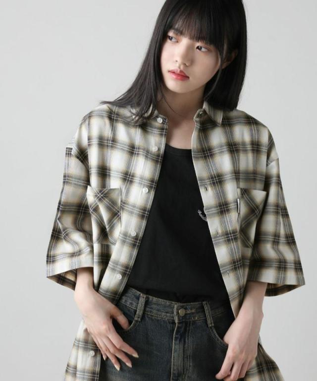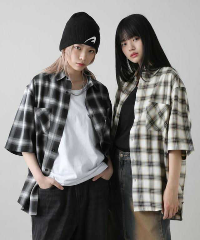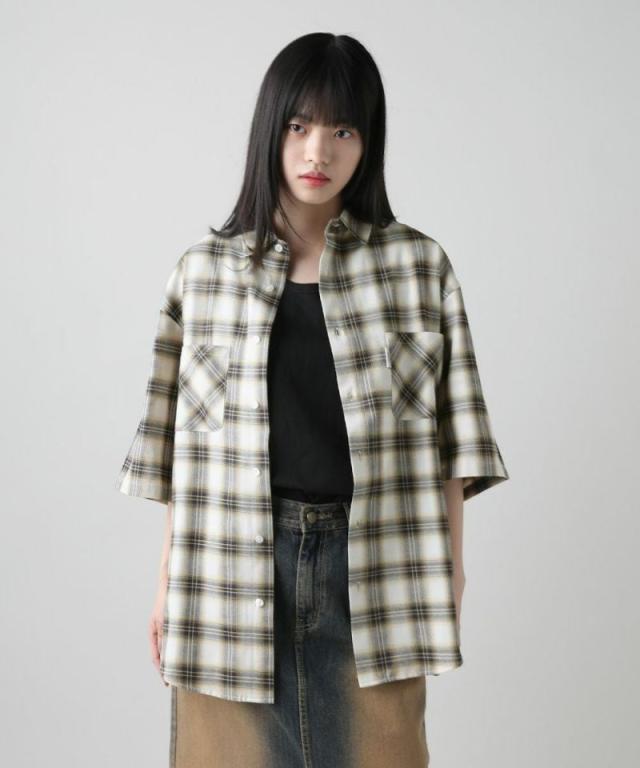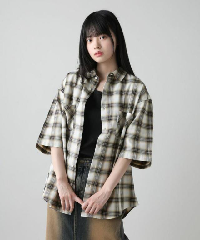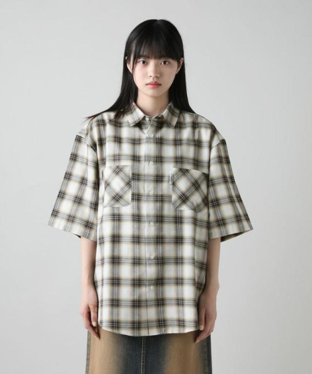 <MSG>オンブレチェックビッグシルエット半袖シャツ
