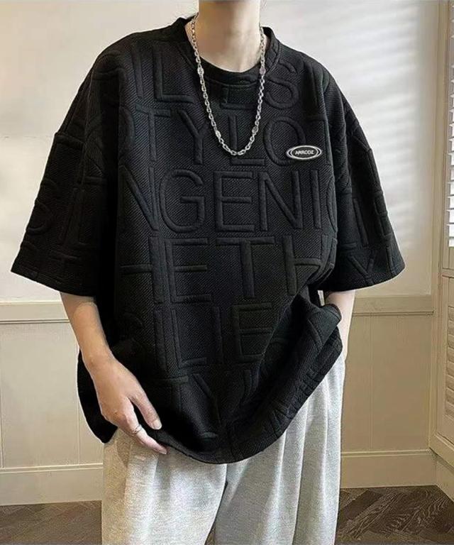 エンボス加工ロゴtシャツ メンズ 韓国風