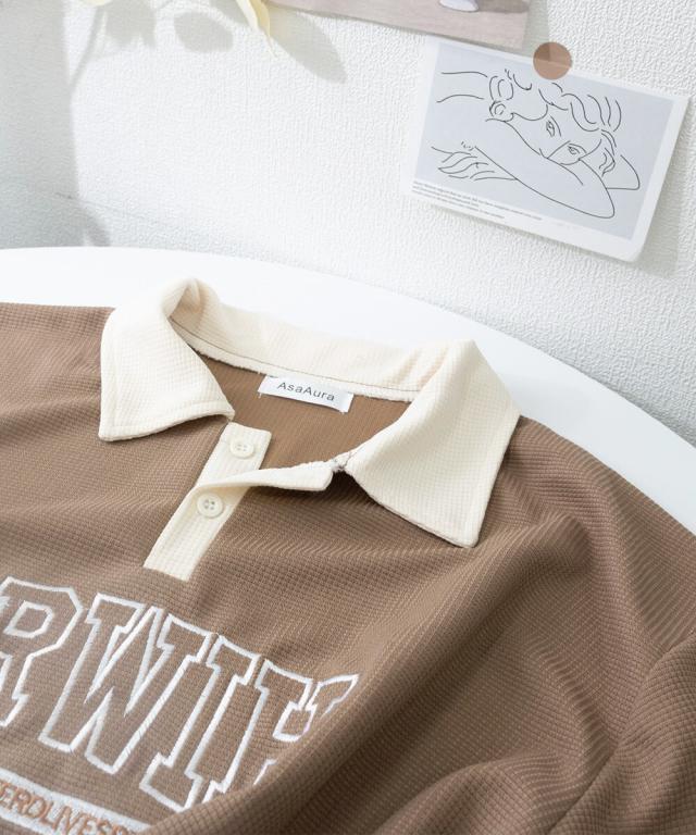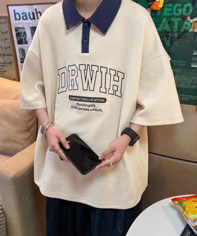 存在感バッチリの英字刺しゅうロゴがカッコイイツートンカラーポロシャツ