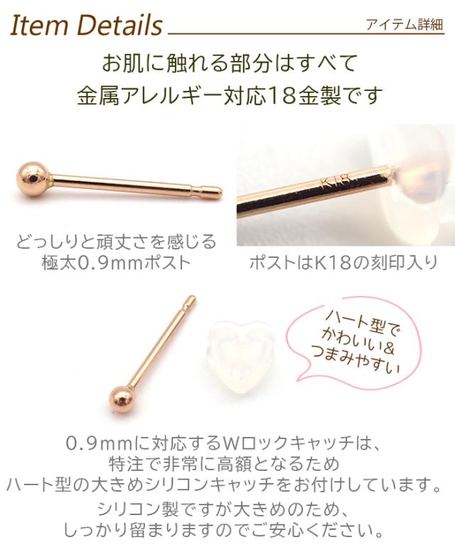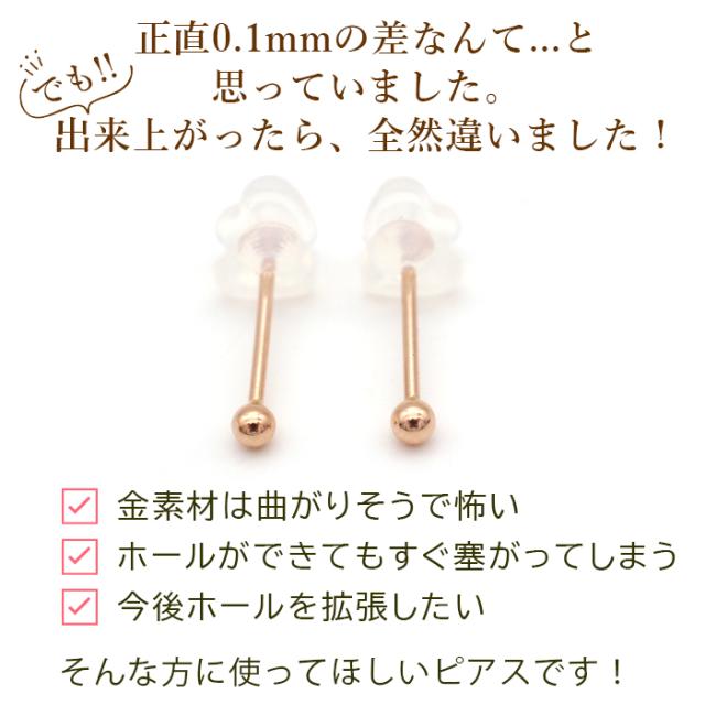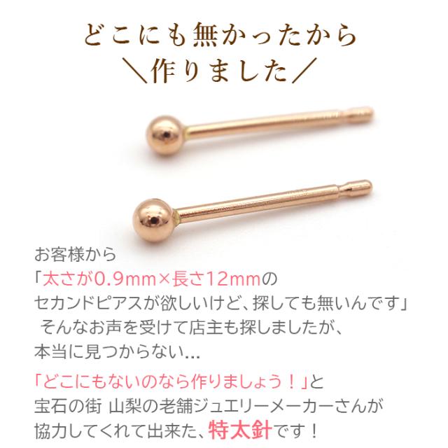 18金 セカンドピアス つけっぱなし 軸太0.9mm ロングポスト12mm 特太針 丸玉 2.5mm シンプル 金属アレルギー K18 PG 日本製 片耳 1個 バラ売り