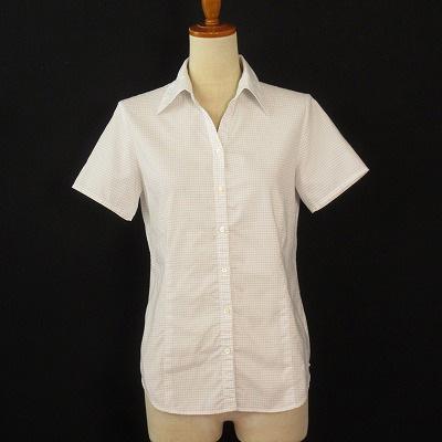 【中古】ニューヨーカー NEWYORKER シャツ オープンカラー チェック 半袖 9R 白 ホワイト グレー レディース