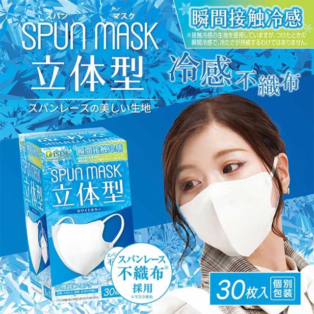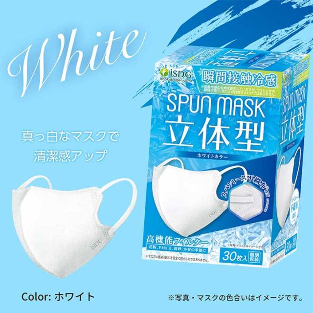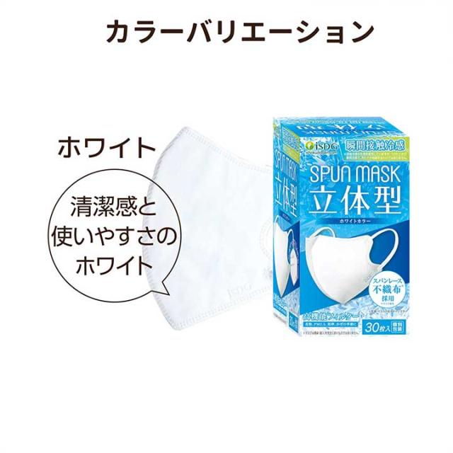 【 冷感タイプ 】 立体型スパンレース不織布カラーマスク (ホワイト) 30枚入 / 災害グッズ 災害時 防災グッズ 防災用品 災害対策 冷感マスク 冷感 夏グッズ 暑さ対策 ひんやりグッズ スパンレース スパンマスク 立体マスク 不織布 艶マスク