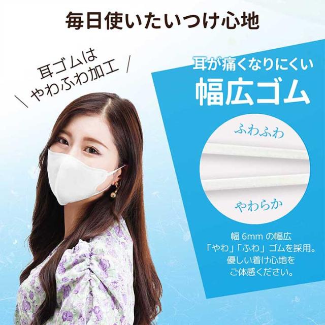 | 使用上及び 保管上の注意 | ●本商品は有毒な粉塵やガス等を防ぐ目的では使用できません。 ●本商品の使用により、かゆみ、かぶれ・発疹等が生じた場合は使用を中止し、医師または薬剤師にご相談ください。 ●本商品の使用中、臭いで気分が悪くなった場合には使用を中止してください。 ●乳幼児の手の届かない所に保管してください。 ●高温多湿な場所や、直射日光の当たる場所を避けて保管してください。 ●マスクを着用中、耳に痛みや不快感を感じた場合には使用を一時中断してください。 ●耳ゴムがきつい場合には、軽く伸ばしてお使いください。 ●マスクは使い切りタイプですので、洗って再利用はしないでください。 ●非常に柔らかい素材を使用しておりますので、使用状況に応じて不織布の毛羽立ちなどが見られる場合がございます。健康を害することはございませんが、新しいものをお使いください。 ●マスクの色合いに若干の差異がありますがご了承ください。 |