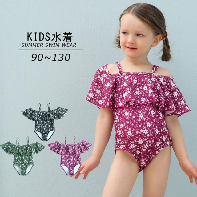子供 水着 女の子 ワンピース キッズ ジュニア 女児 90cm 100cm 110cm 120cm 130cm 小学生 オールインワン 肩フリル おしゃれ かわいい ギンガムチェック ストラッピー 水遊びプール 海 動きやすい k6142zbzblc