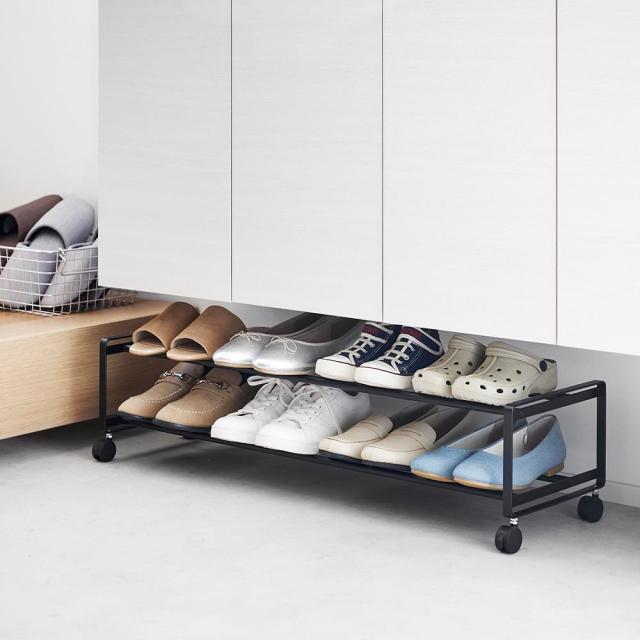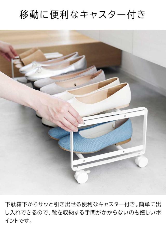MM1 引き出せるキャスター付きシューズラック タワー 2段 山崎実業 tower ホワイト ブラック 1624 1625 シューズラック シューズボックス 下駄箱 収納ラック 靴箱 省スペース 収納 キャスター付き 靴収納 おしゃれ シンプル yamazaki タワーシリーズ 送料無料