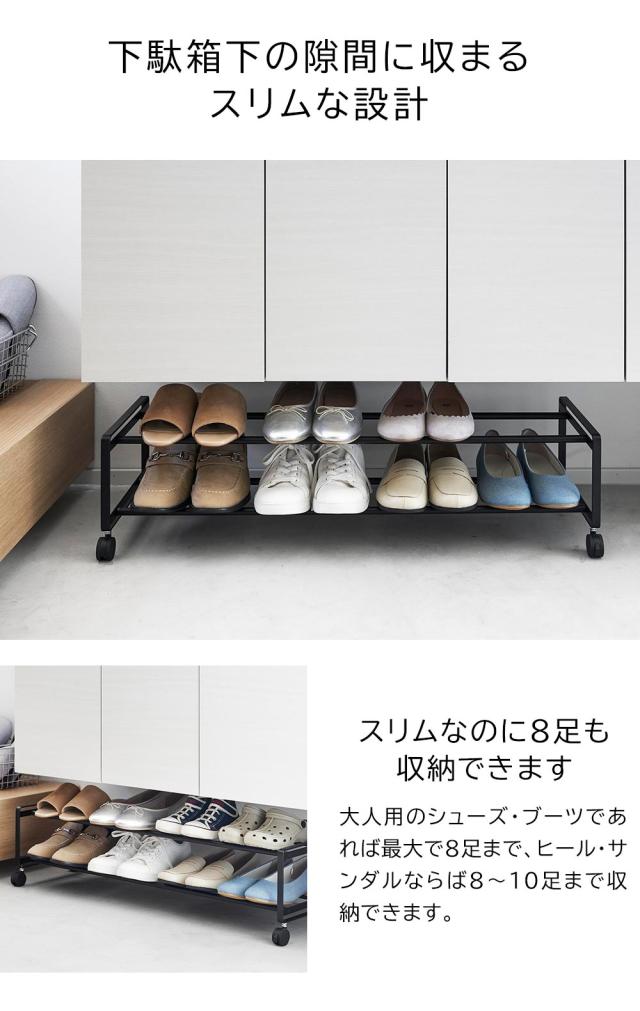 引き出せるキャスター付きシューズラック タワー 2段 ![]() 玄関で散らかりがちな靴を 下駄箱下の隙間に収納できる2段のシューズラックです。こちらのラックを使うことで、下駄箱に入りきらなくなった靴や、毎日履くから下駄箱にしまうのが面倒な通勤・通学用の靴などを、下駄箱下にまとめて収納できます。下駄箱下の隙間に収まるスリムなサイズなのに、大人用の靴が8〜10足まで収納可能。出し入れ簡単なキャスター付きなので、お出かけ時に靴をサッと取り出せて便利。玄関のお掃除の際に移動しやすいのも嬉しいポイントです。キャスターは不要に動かないようにストッパーも付いています。 ![]() ![]() ![]() ![]() ![]() ![]() ![]() ![]() ![]() ![]() ![]() |