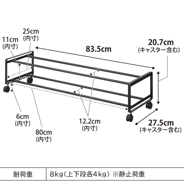 | 耐荷重 8kg(上下段各4kg) ※静止荷重 |