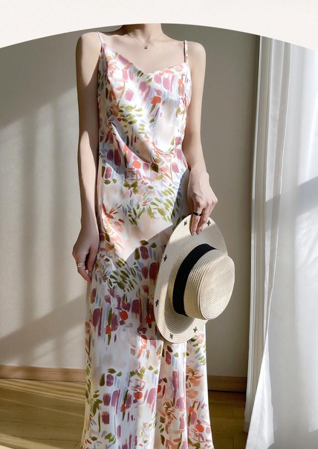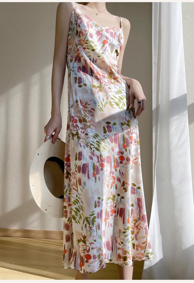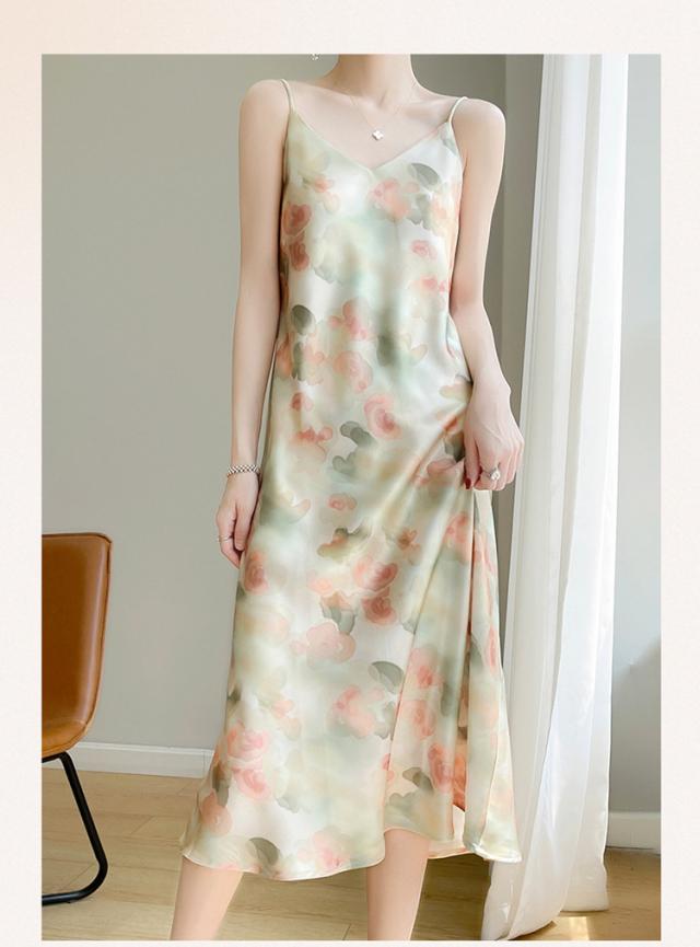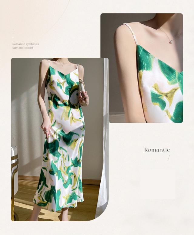 袖なしワンピース 夏 レディース 膝丈ワンピース キャミソール ふんわり プリント