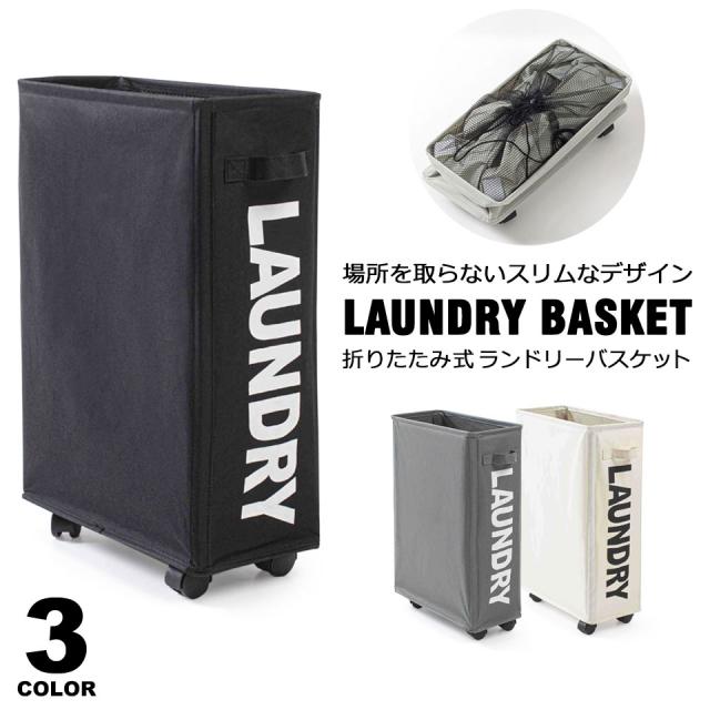 場所を取らないスリムなデザインのランドリーバスケット。キャスター付きなので、移動もラクラクなランドリーバスケットです。