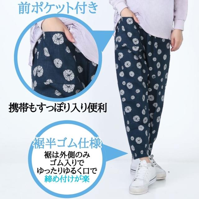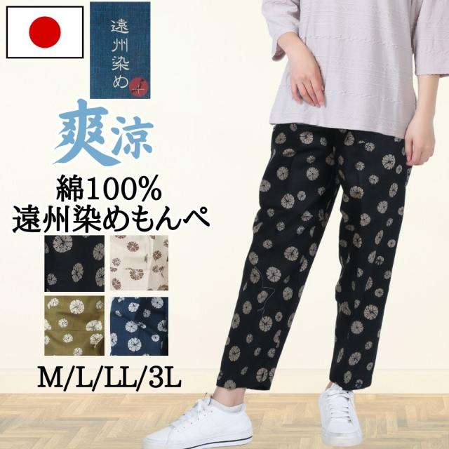 シニアファッション パンツ レディース ズボン 日本製 夏 おばあちゃん 遠州染め和柄もんぺ 遠州染め 日本製 80代 70代 もんぺ サルエルパンツ イージーパンツ 敬老の日 伝統工芸品 セット商品