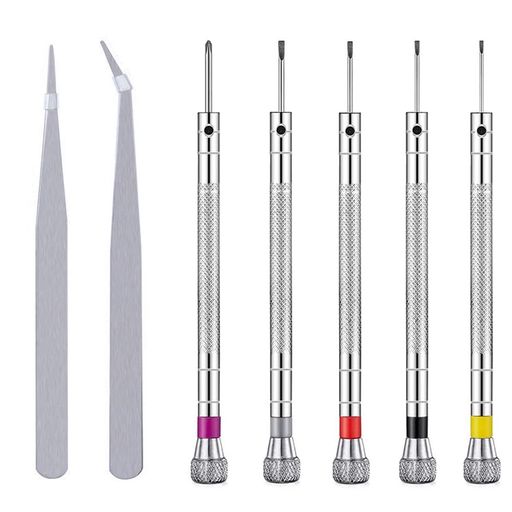 精密ドライバー 時計職人ドライバー 精密 マイナスドライバー 極細ピンセット ピンセット 腕時計用 時計工具セット 時計電池交換 パソコンの修理 腕時計の修理 眼鏡の修理(7本セット)