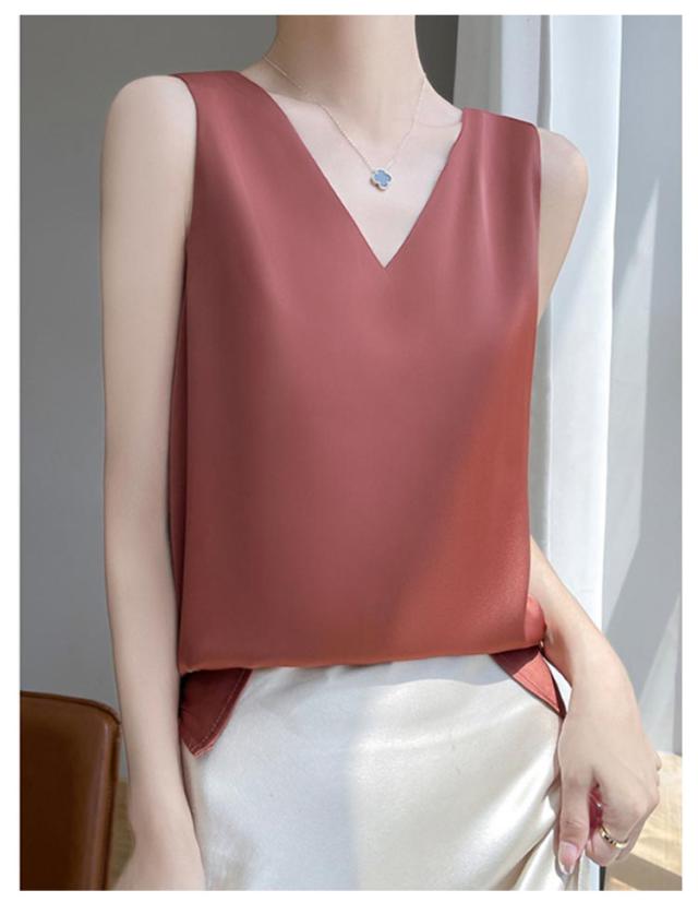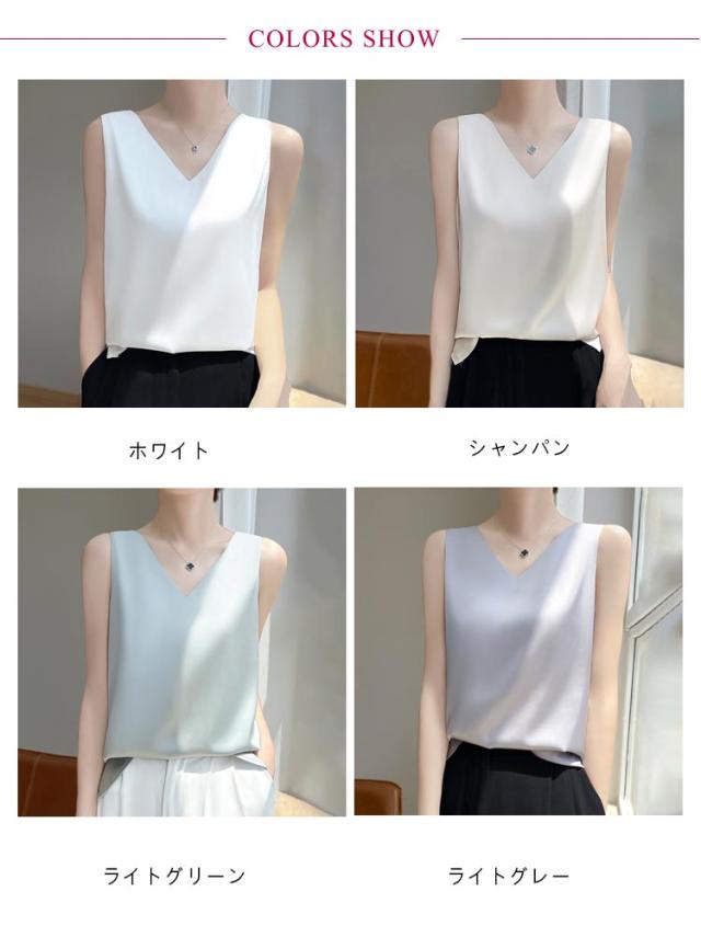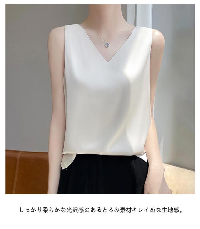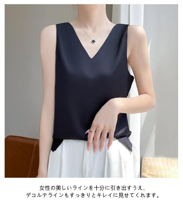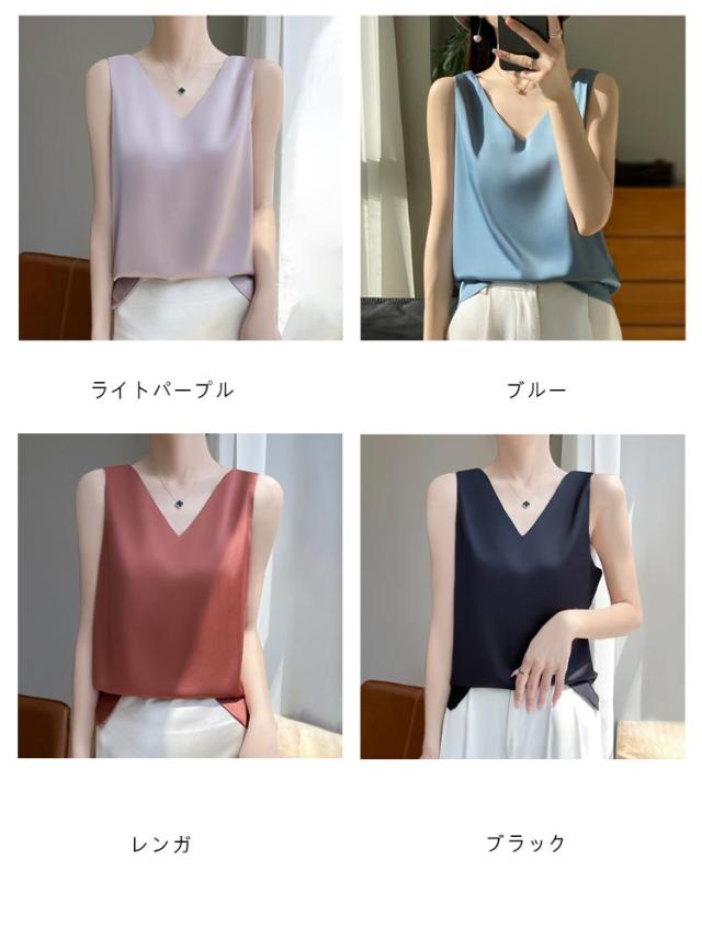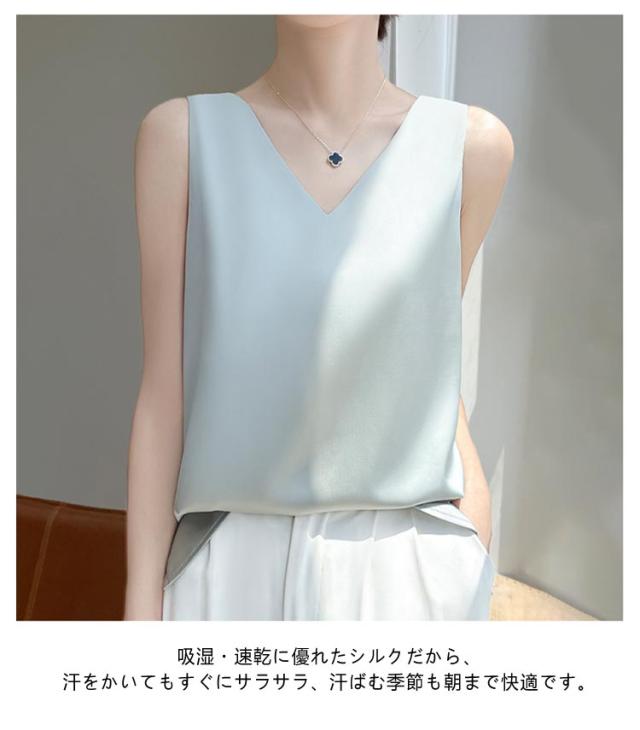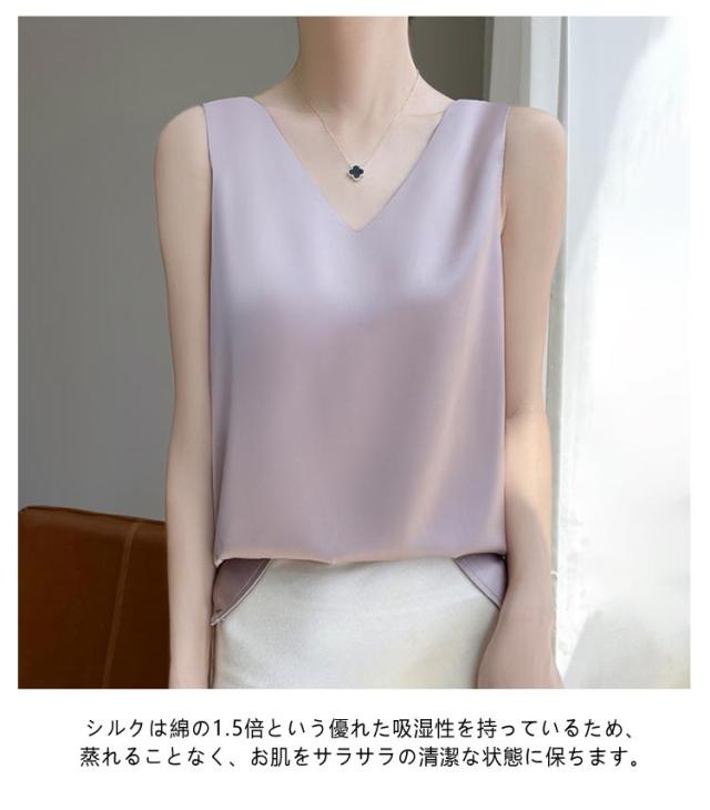 レディース シルク ゆったり キャミソール シャツブラウス タンクトップ インナー クルーネック 前後着用2WAY サテン 大きいサイズ トップス ノースリーブ ブラウス vネック シルクサテン ブラ紐隠し アンダーウェア 薄手 上品