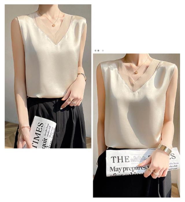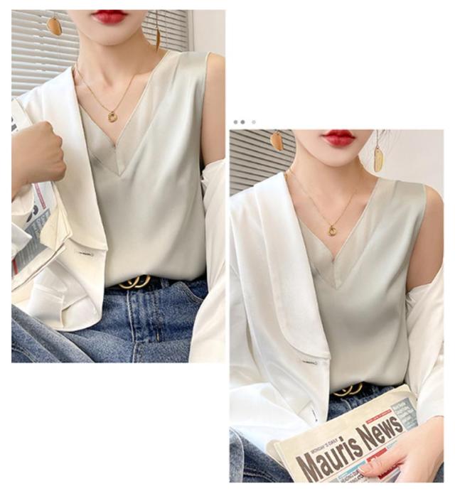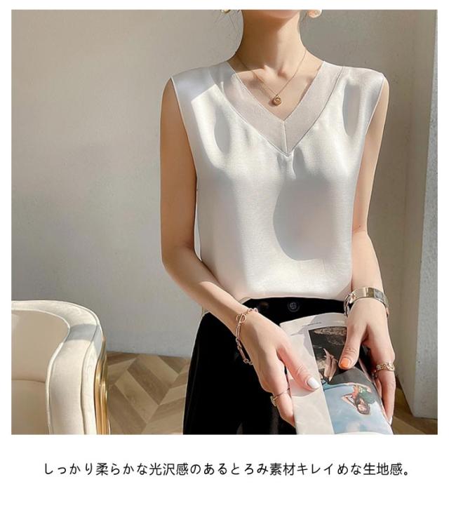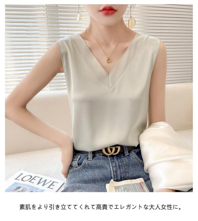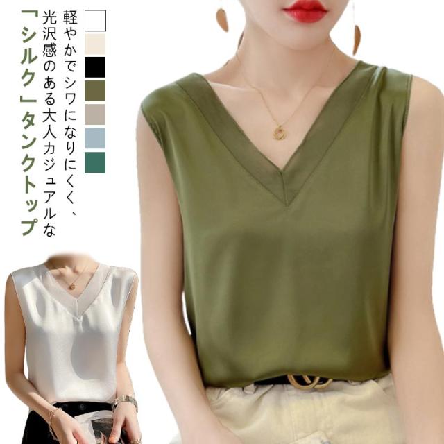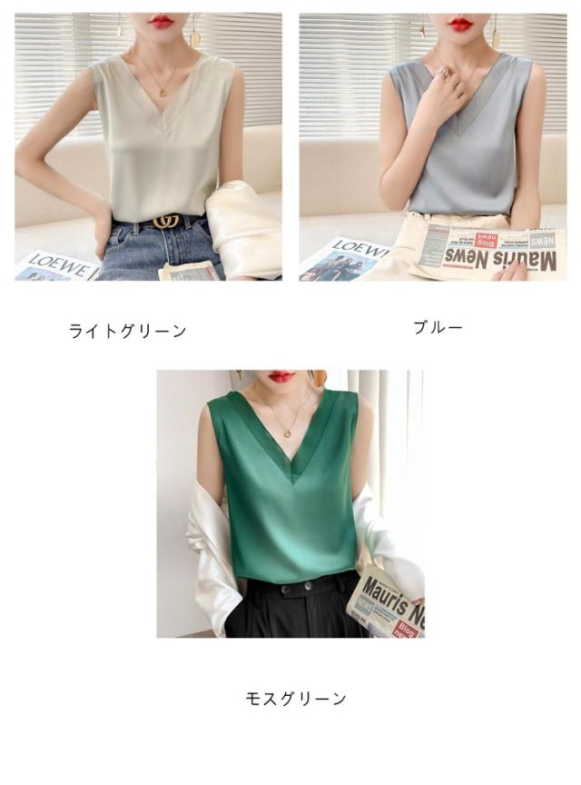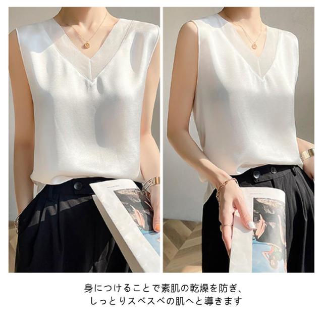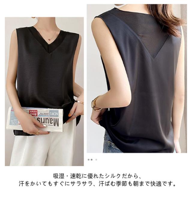 レディース シルク サテン ブラウス シャツブラウス キャミソール インナー vネック ノースリーブ シャツ トップス 大きいサイズ タンクトップ ゆったり タンクトップ 薄手 ショート丈 光沢感 高級感 上品 大人 重ね着 肌着 敏感肌
