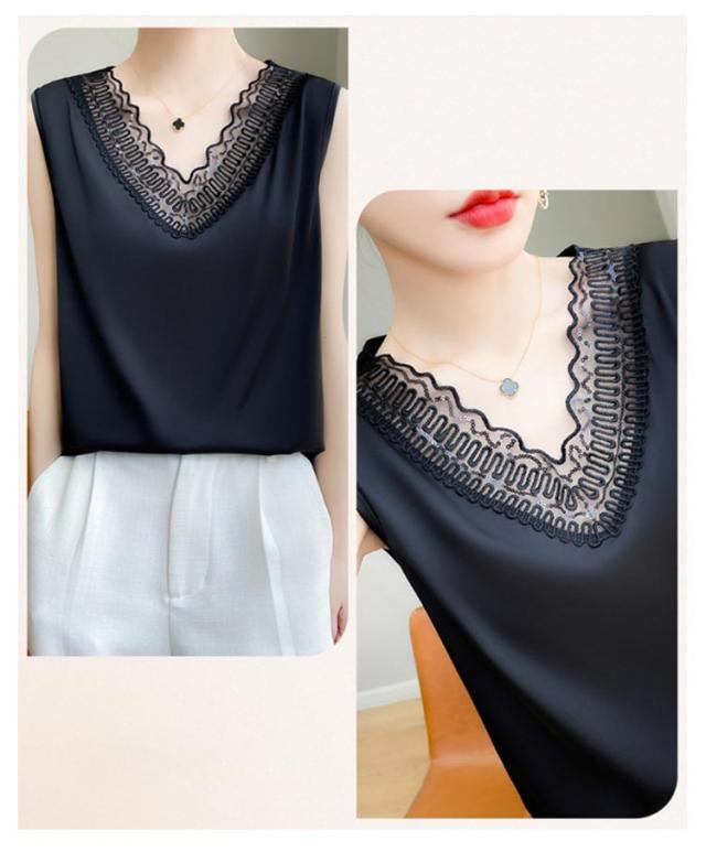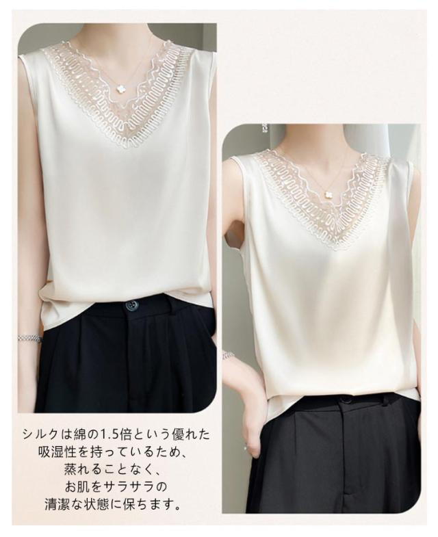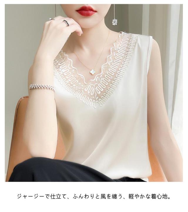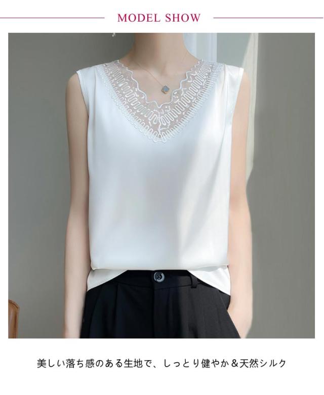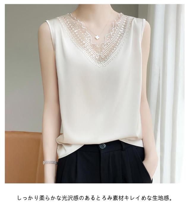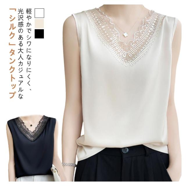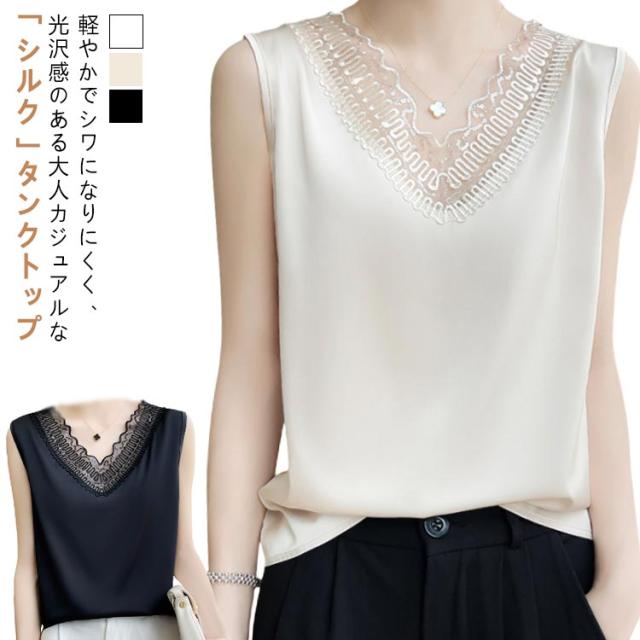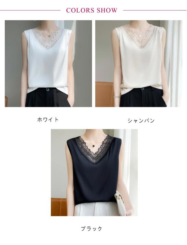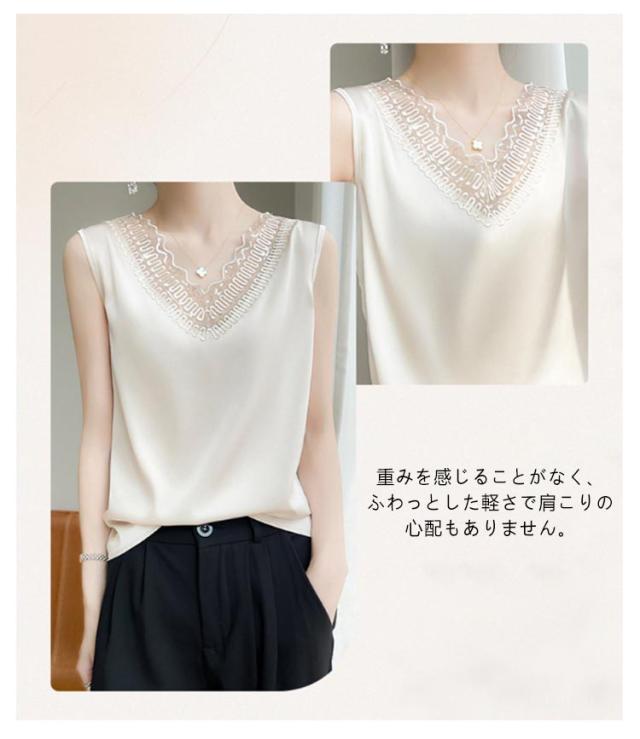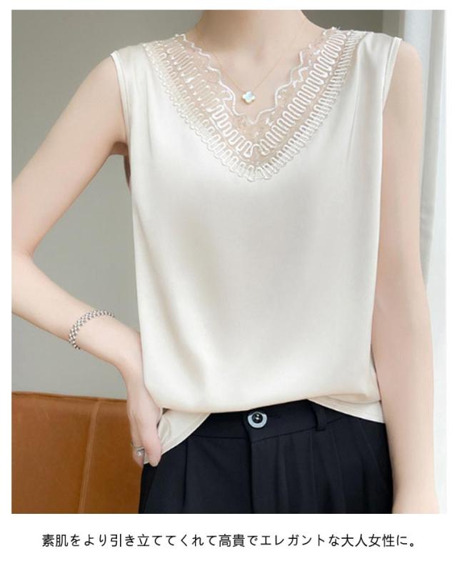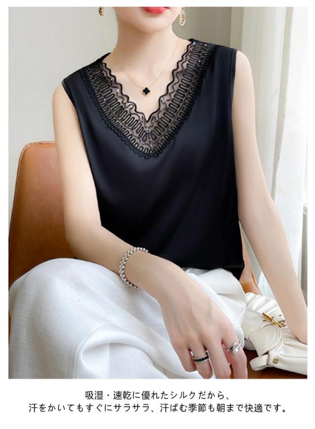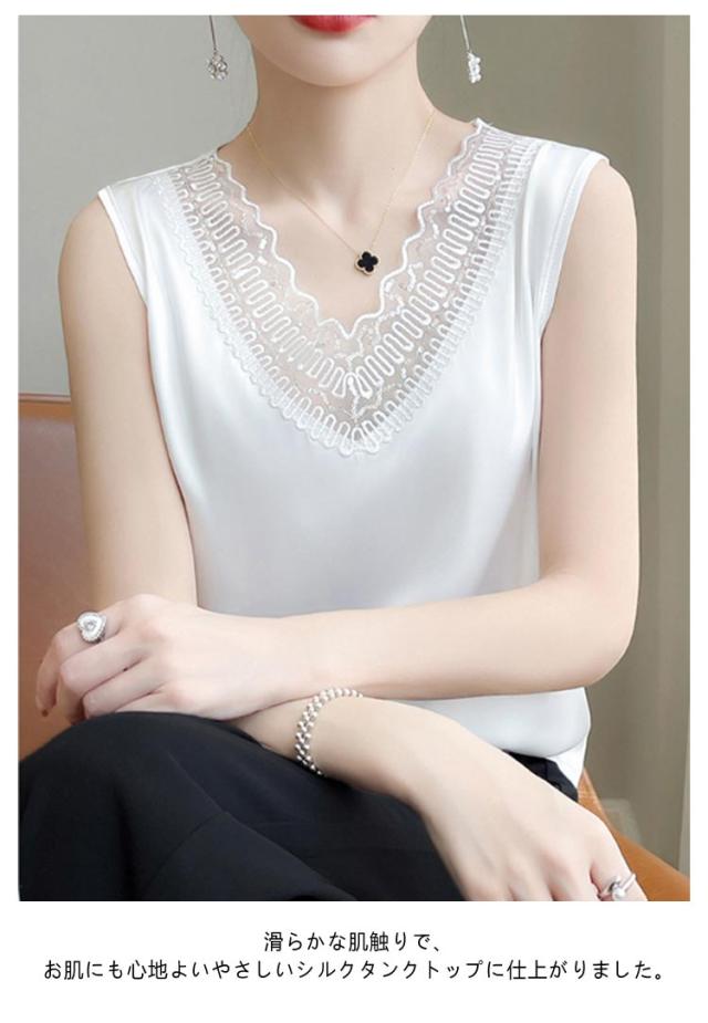 大きいサイズ タンクトップ シャツブラウス ブラウス vネック レディース インナー レース スパンコール キャミソール シャツ ノースリーブ トップス シルク ゆったり サテン 薄手 ショート丈 きらきら 光沢感 高級感 上品 大人