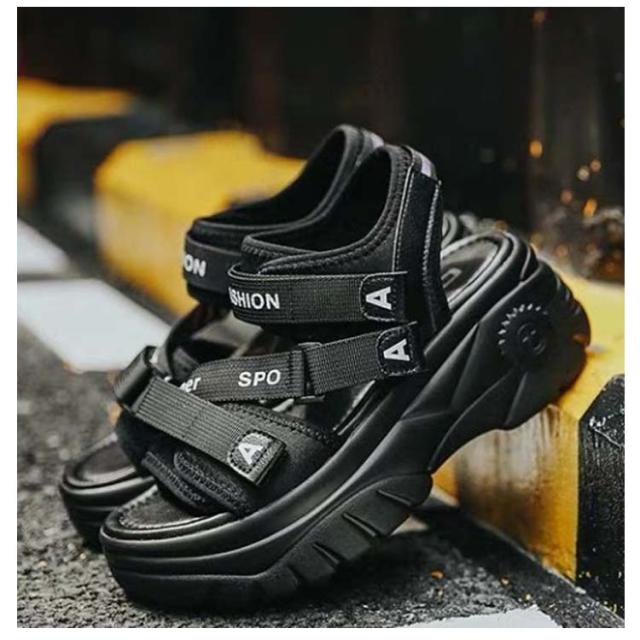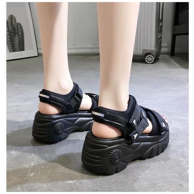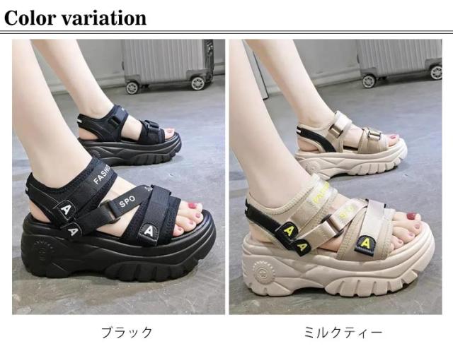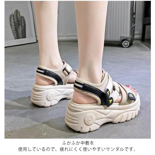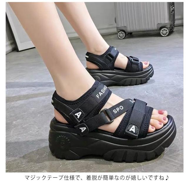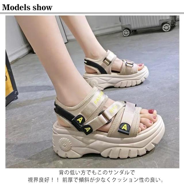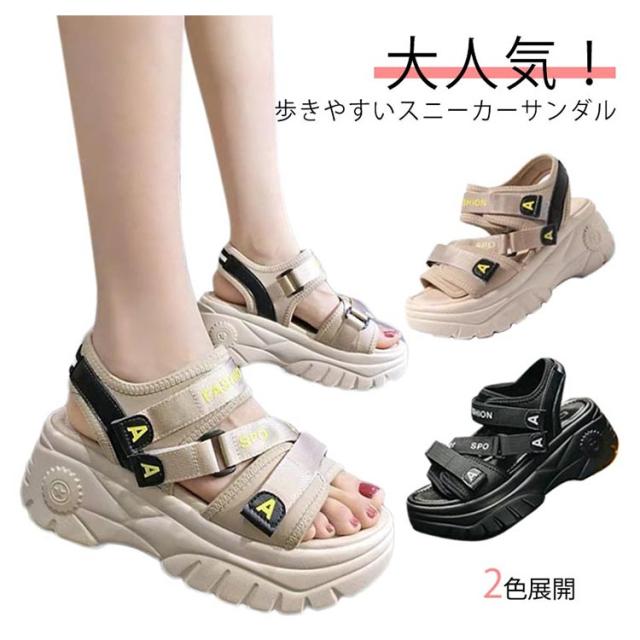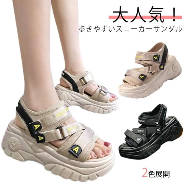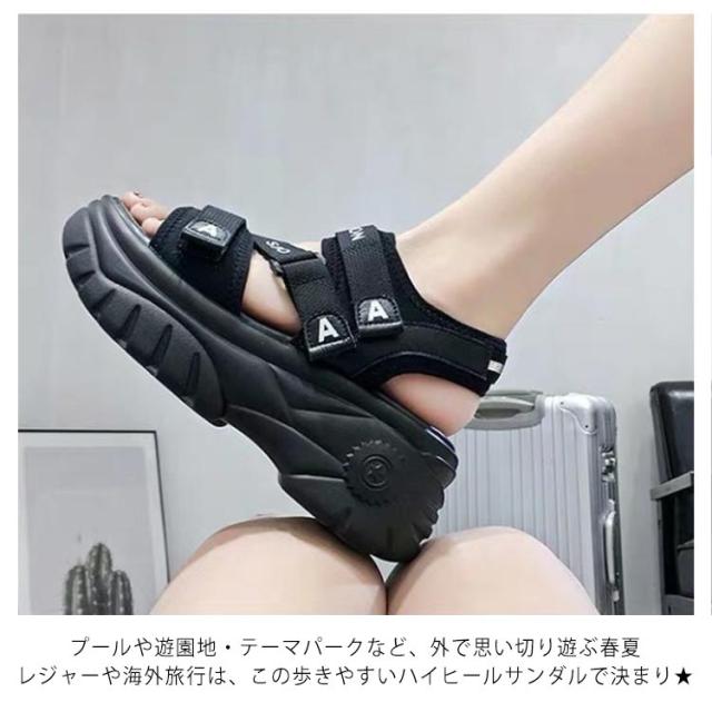 | 大人気!歩きやすいスニーカーサンダル 背の低い方でもこのサンダルで視界良好!! 前厚で傾斜が少なくクッション性の良い。 ふかふか中敷を使用しているので、疲れにくく使いやすいサンダルです。 約6cmのあるソールは足をすらっと細く見せ、美脚&足長を実現してくれます マジックテープ仕様で、着脱が簡単なのが嬉しいですね♪ プールや遊園地・テーマパークなど、外で思い切り遊ぶ春夏レジャーや海外旅行は、この歩きやすいハイヒールサンダルで決まり★ | |