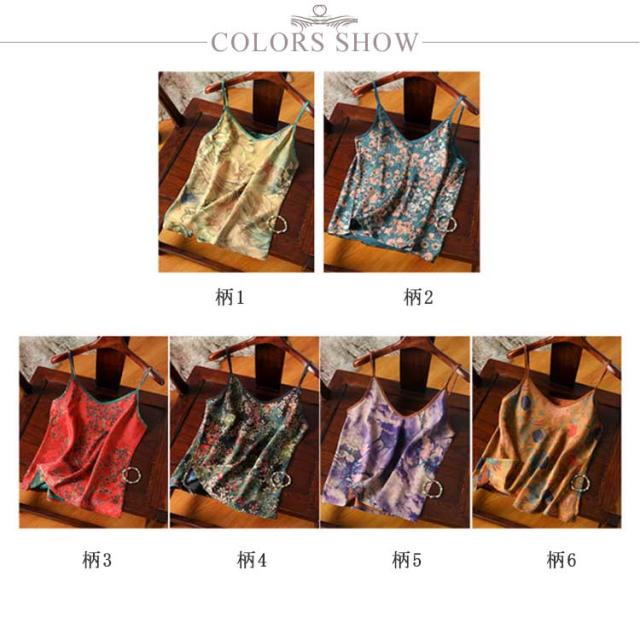 Vネック キャミソール シルク サテン シルク プリント タンクトップ ショート丈 アンダーウェア ストラップ インナー ノースリーブ 大きいサイズ ゆったり ブラウス トップス 袖なし レディース 細 肌着 重ね着 光沢感 上品