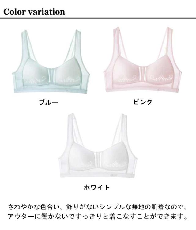 | 極薄・通気性・伸縮性・ジュニアブラ ノンワイヤーのデザインは痛くない、成長するバストを優しく守ります。 内蔵パッドは通気性抜群で、汗をかいても蒸れにくく快適な着心地です。 ストレッチ性抜群の素材を採用しており、締め付け感がなくストレスフリー♪ さわやかな色合い、飾りがないシンプルな無地の肌着なので、アウターに響かないですっきりと着こなすことができます。 | |