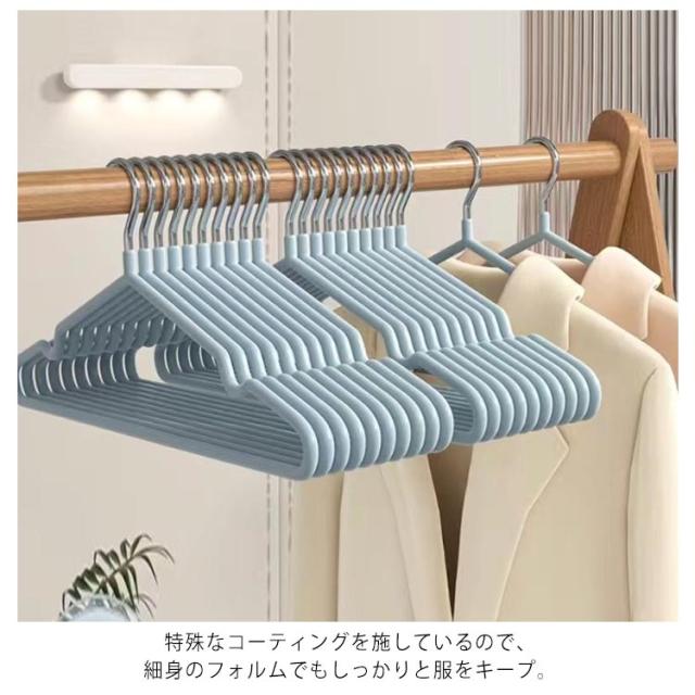 20本セット 滑らないハンガー ハンガー スリムハンガー 洗濯ハンガー 滑らないハンガー 軽量 収納 コンパクト 収納ハンガー スリム 省スペース シャツ 物干し 乾湿両用 収納便利 丈夫 おしゃれ コーティング Tシャツ 衣類ハンガー クローゼット収納