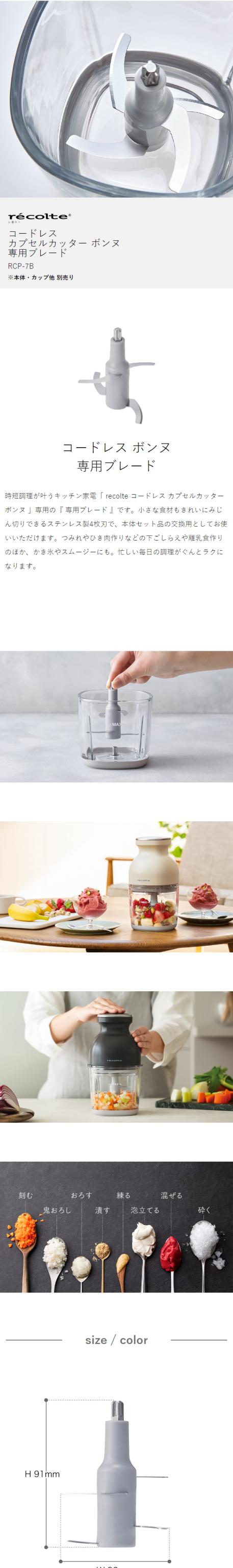 [ recolte コードレス カプセルカッター ボンヌ 専用ブレード ]交換用 ブレード RCP-7 コードレス カプセルカッターボンヌ レコルト フードプロセッサー ミキサー ステンレス製 4枚刃 みじん切り 氷も砕ける かき氷 離乳食 RCP7 専用 予備 交換 取り換え 交換ブレード
