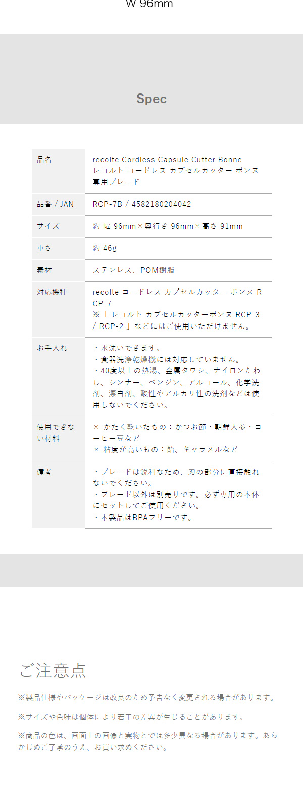 [ recolte コードレス カプセルカッター ボンヌ 専用ブレード ]
