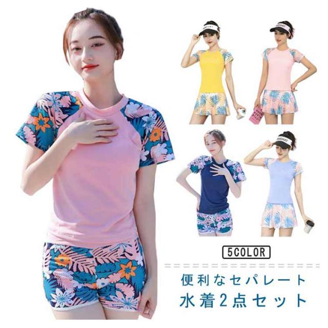 レディース 水着 30代 ショートパンツ 体型カバー水着 かわいい 20代 スクール水着 半袖トップス スクール水着 スパッツ セパレート 2点セット 大きいサイズ フィットネス 40代 50代 60代 ミセス ママ水着 ぽっちゃり 女性 スポーツ