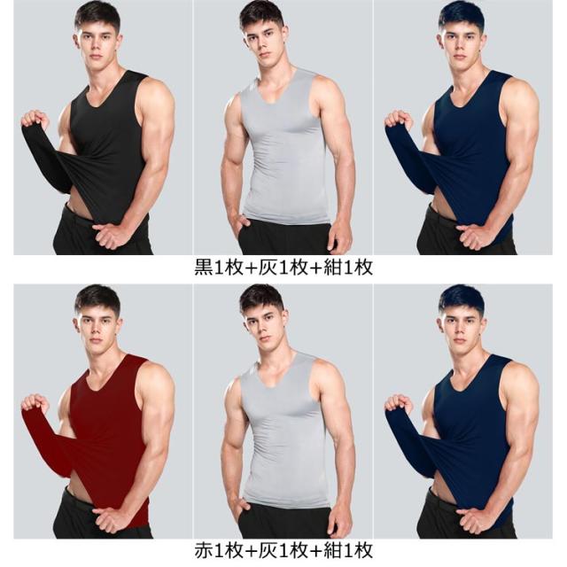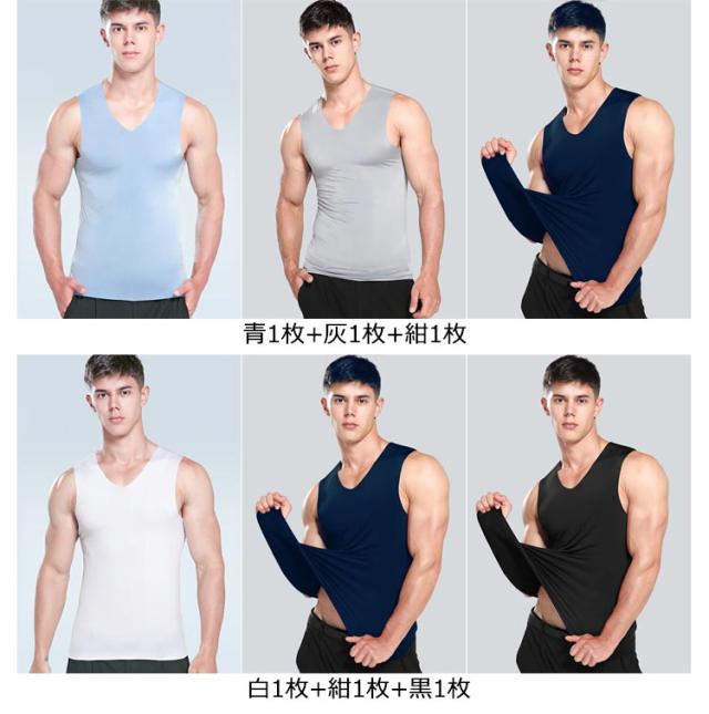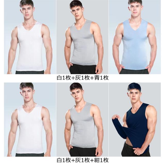 接触冷感 Vネック タンクトップ メンズ 肌着 トップス 通気 接触冷感 3枚組 シームレス 速乾 ノースリーブ ンナーシャツ 涼しい 吸汗速乾 春夏 夏用 アンダーウエア ビジネス カジュアル レイヤード 重ね着