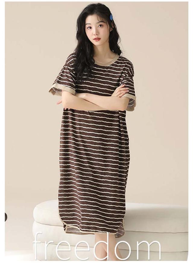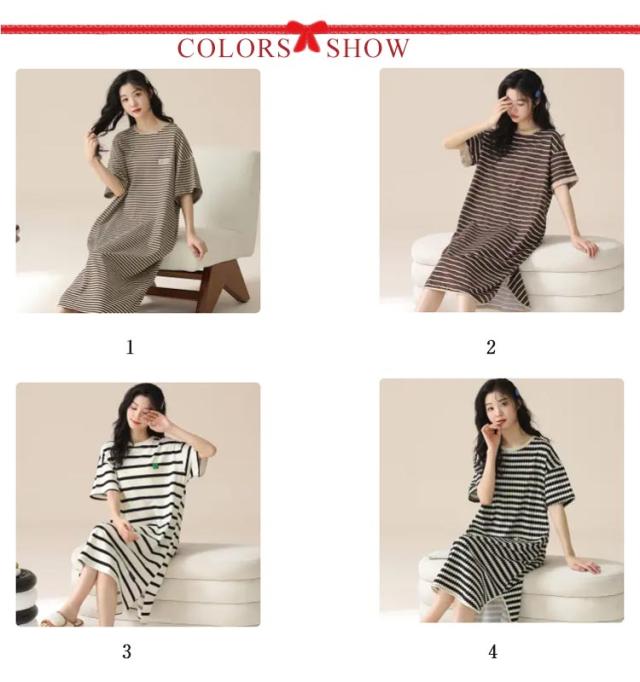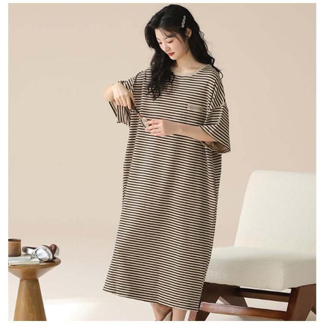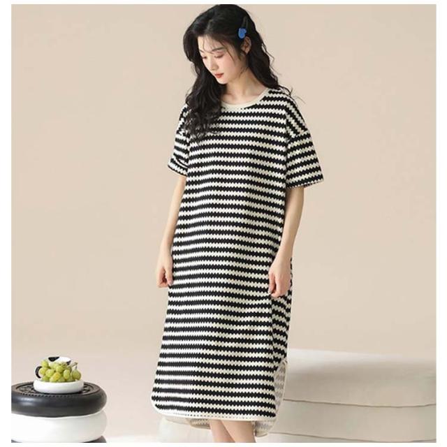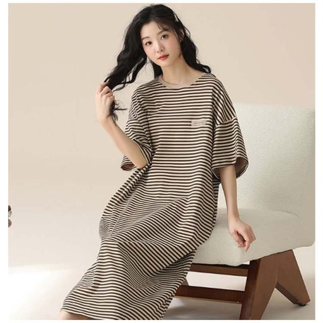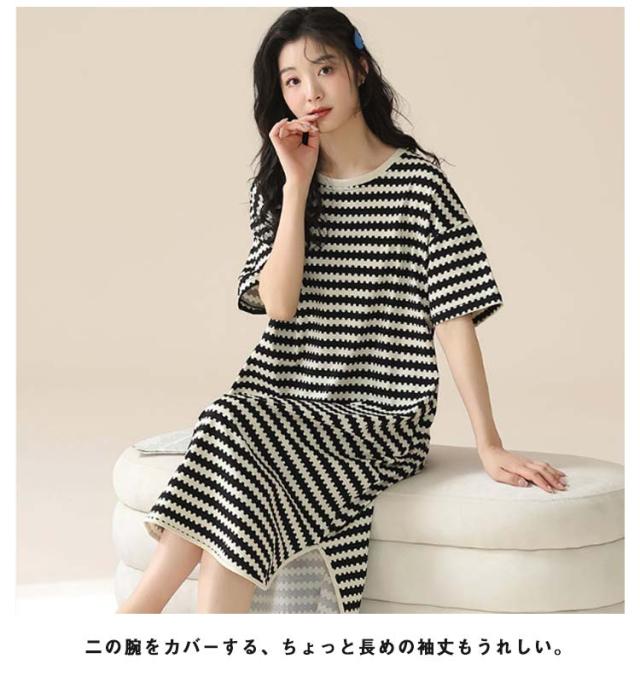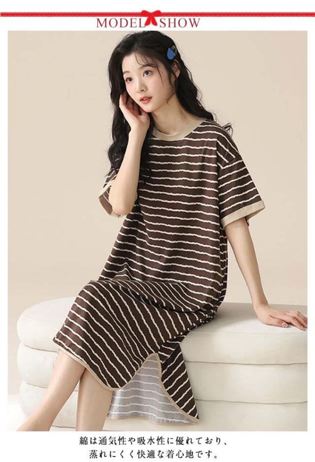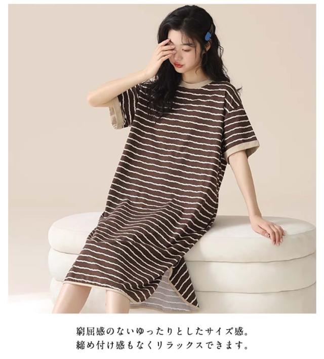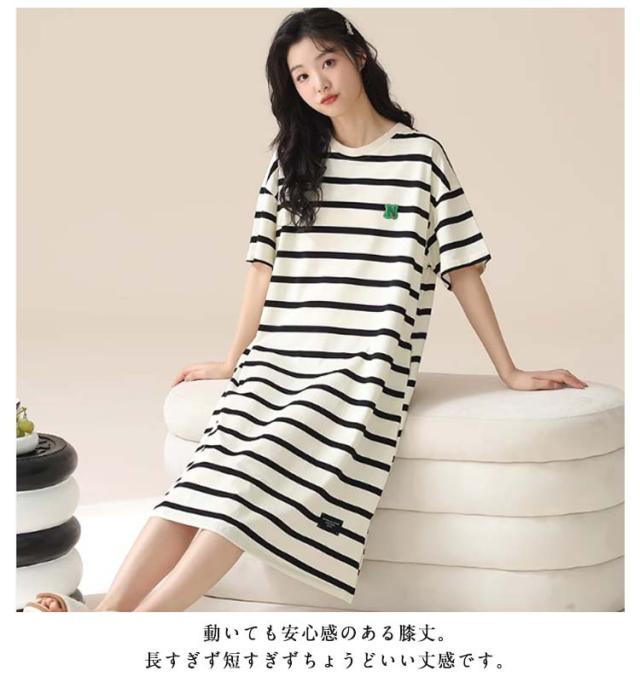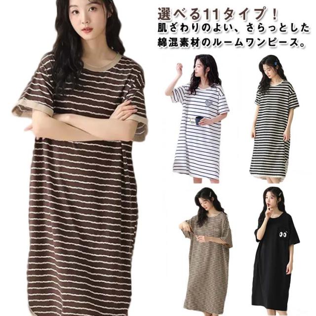 涼しい 柔らかい 送料無料 パジャマ 部屋着 レディース 春夏 薄手 ボーダー柄 半袖 ルームウェア 可愛い ナイトウェア ルームワンピース 綿混 寝巻き カジュアル トップス ロング丈 ゆったり 夏 ワンピース