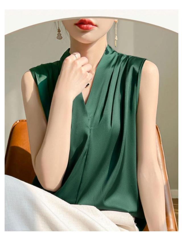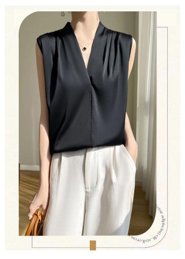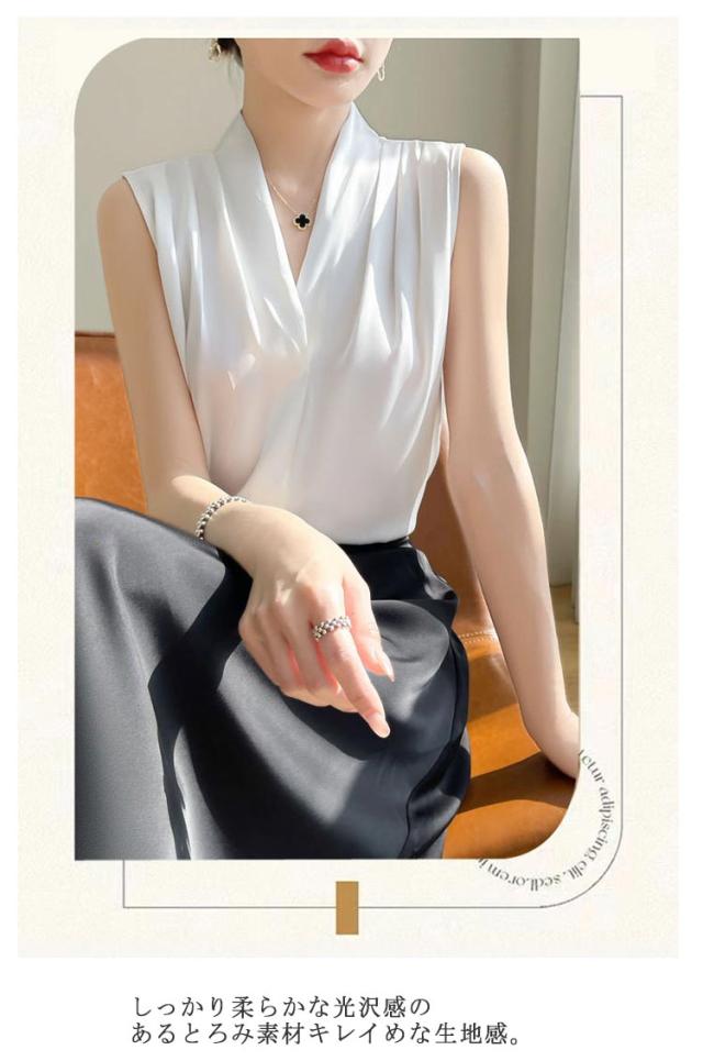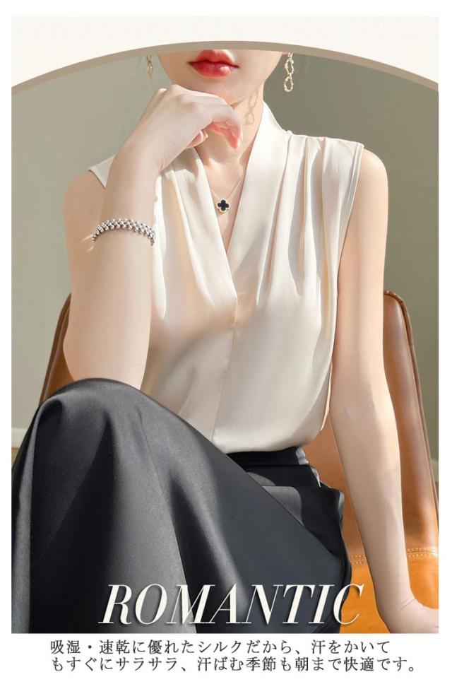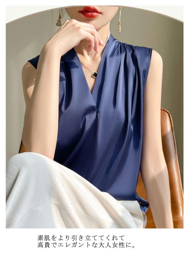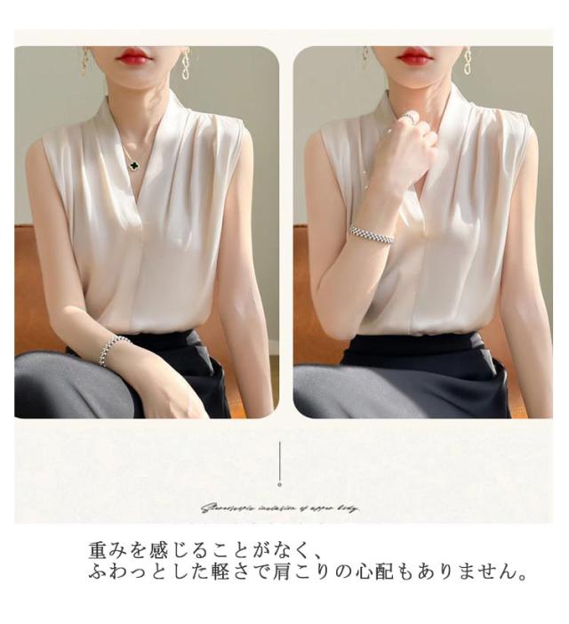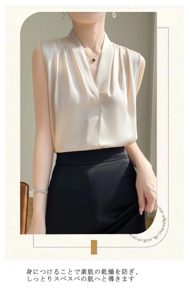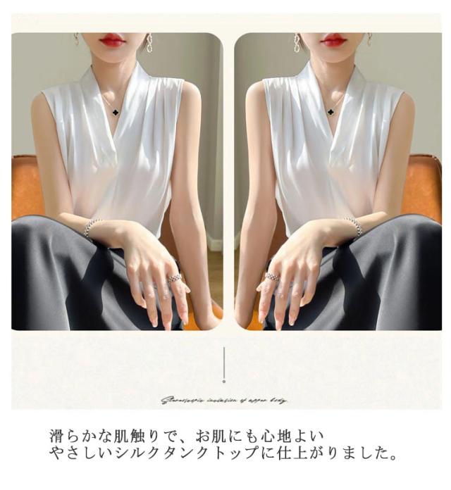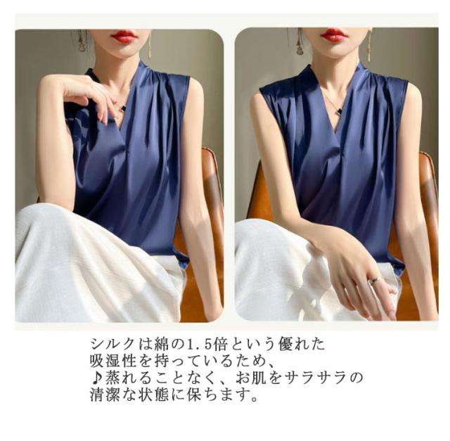 シャツブラウス シルク ショート丈 肌着 サテン シャツ vネック ブラウス インナー 高級感 ノースリーブ トップス tシャツ ゆったり 大きいサイズ 薄手 タンクトップ 光沢感 レディース 上品 大人 重ね着 普段着 敏感肌 柔らか 透けない 通気性 吸湿 楽チン キャミソール