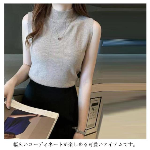夏 ハイネック レディース トップス Tシャツ 無地 ニットタンクトップ ストレッチ ニットトップス ハイネックニット レイヤード シンプル ニットタンクトップ ノースリーブ 全9色 サマーニット S M L XL